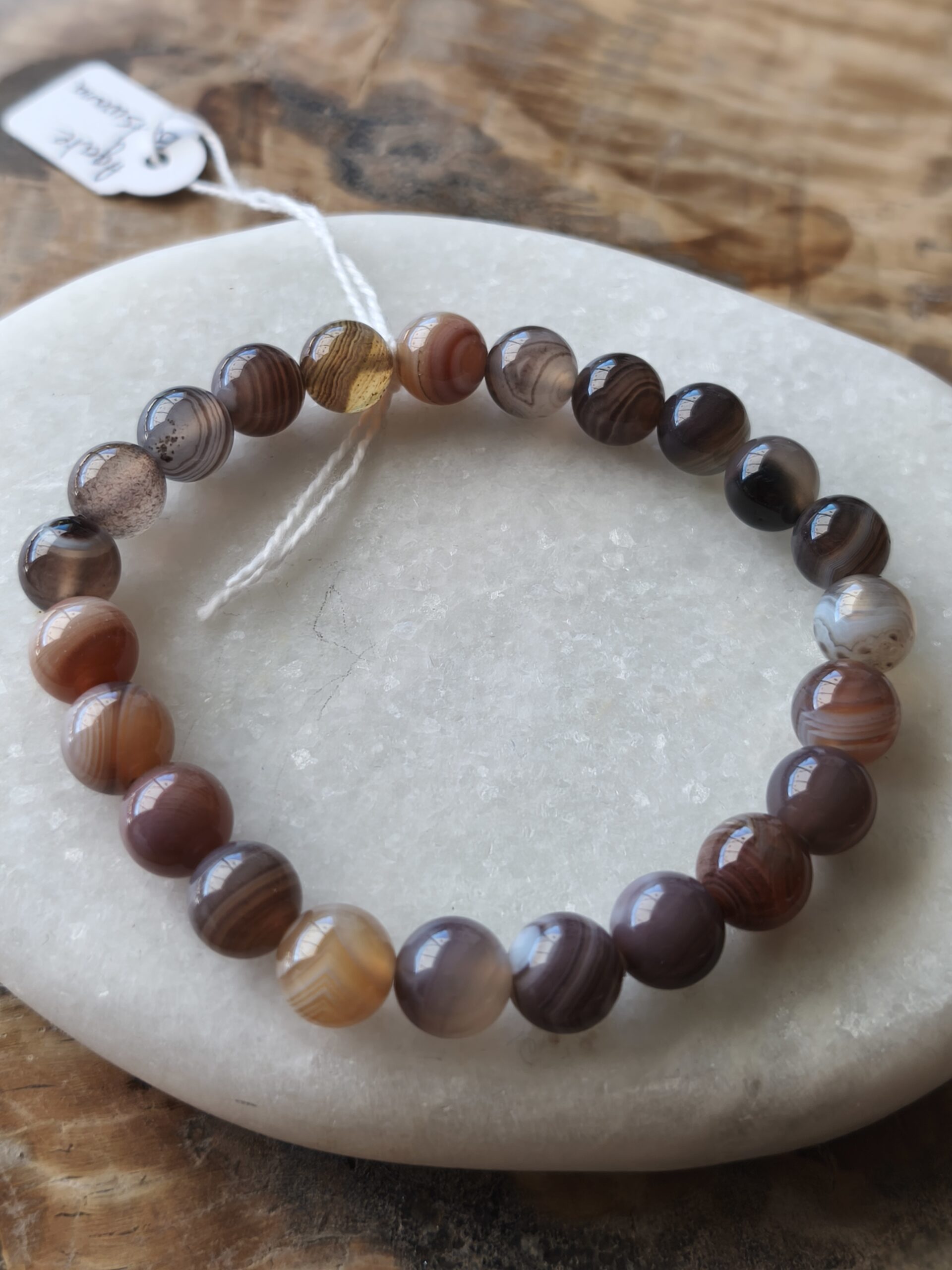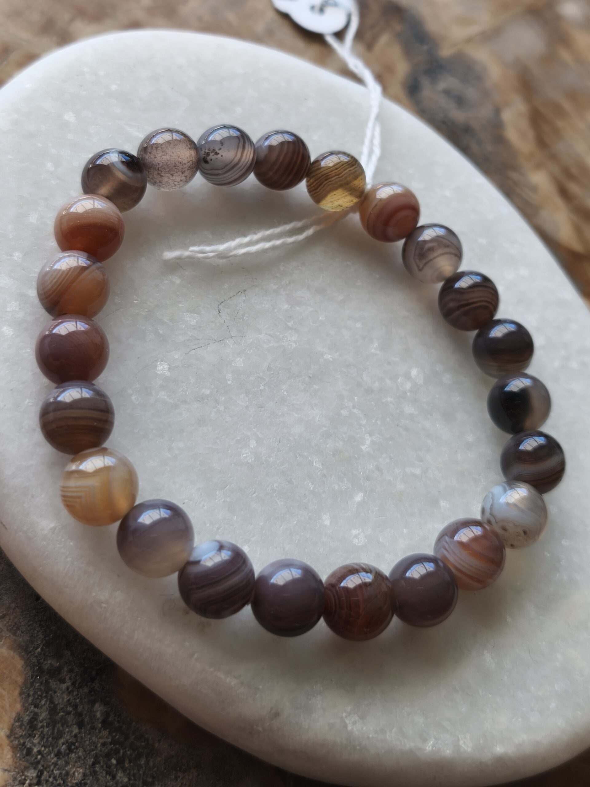 | Agate | Bracelet en Agate Botswana en perles de 8 Mm pour un poignet de 18 à 19 cm. |