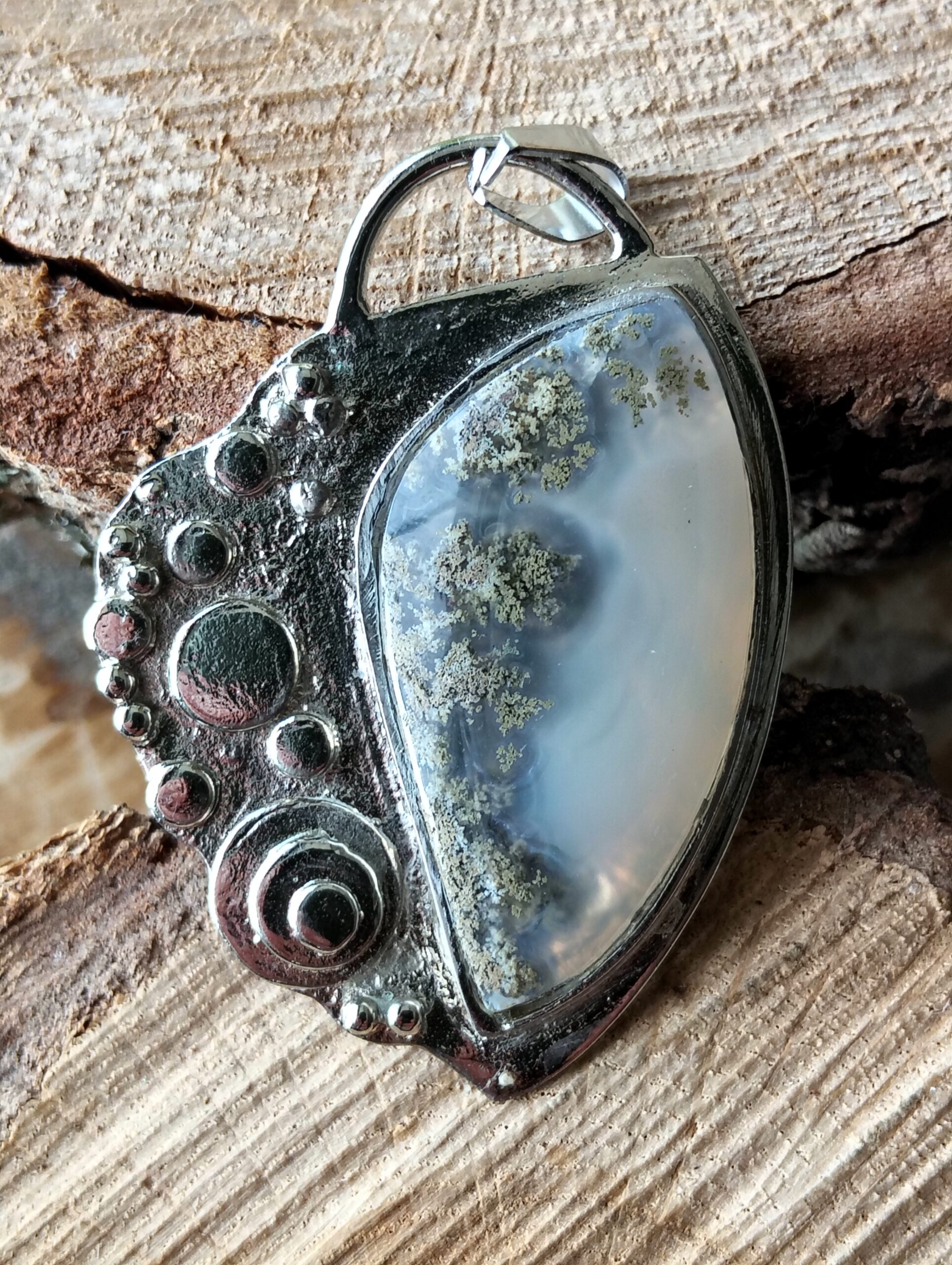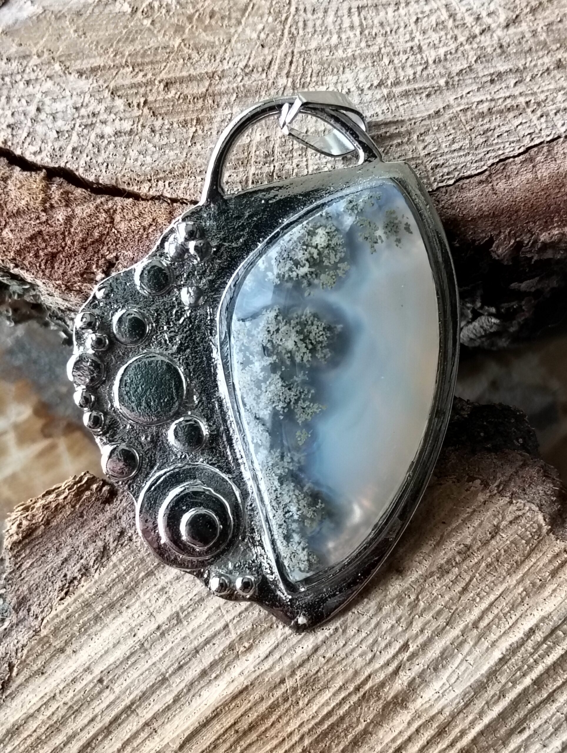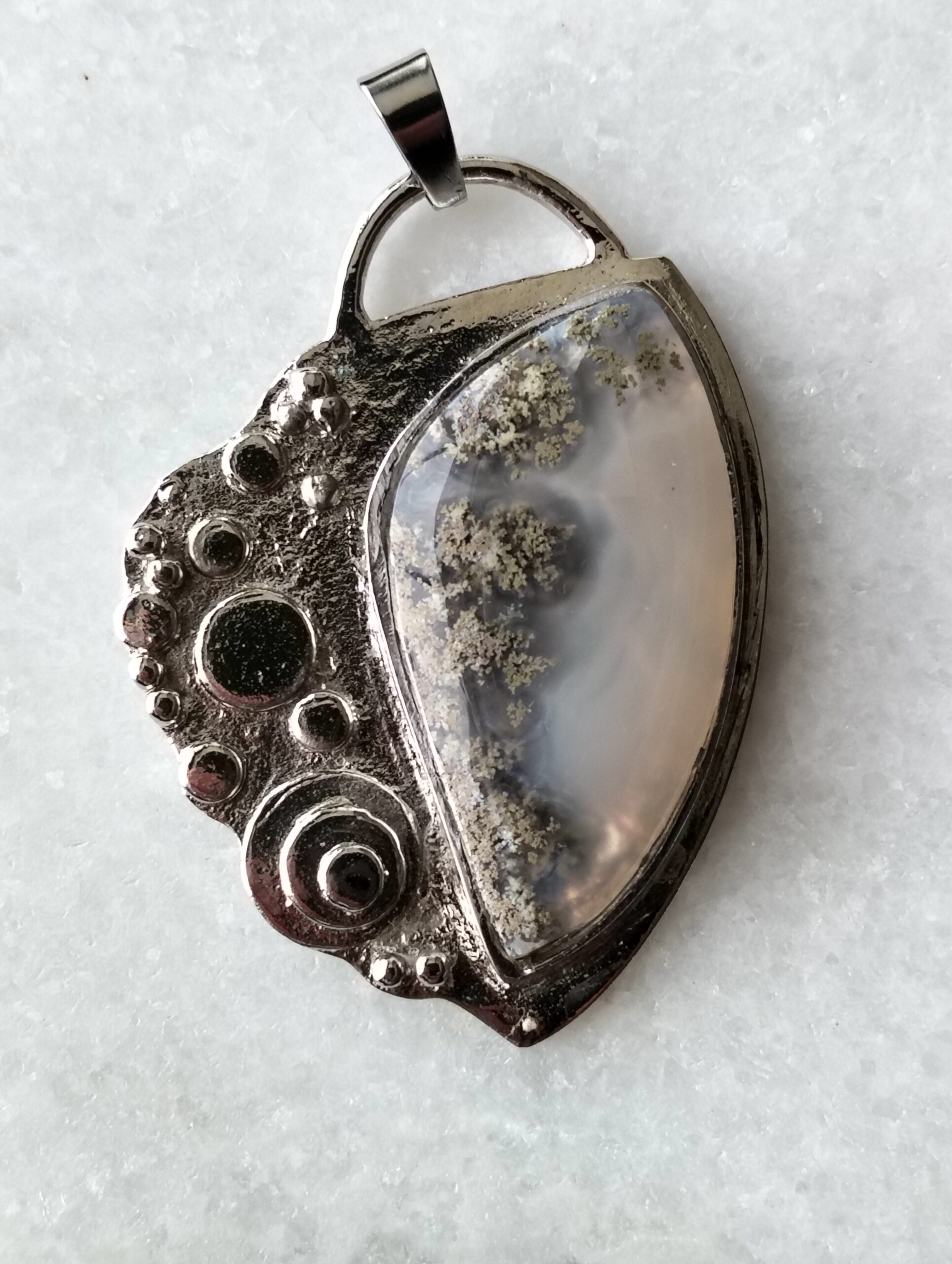 | Agate mousse | Pendentif en Agate mousse monter sur acier. |