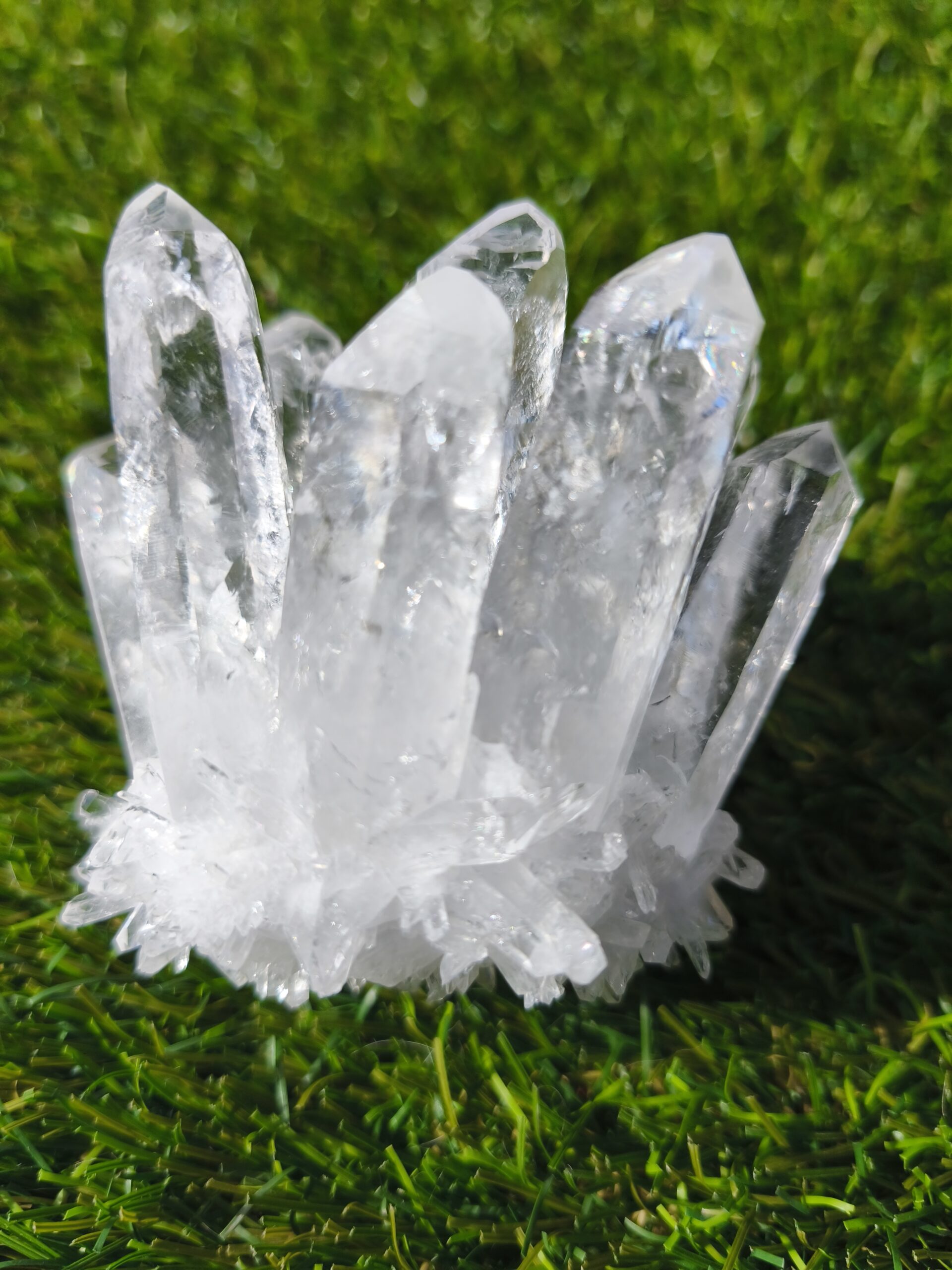 | druse | amas avec pointe de cristal de roche, le cristal de roche aide a defaire les blocages energetiques et emotionnels. il est recepteur, emeteur, transformeteur et emplificateur d'energie… |