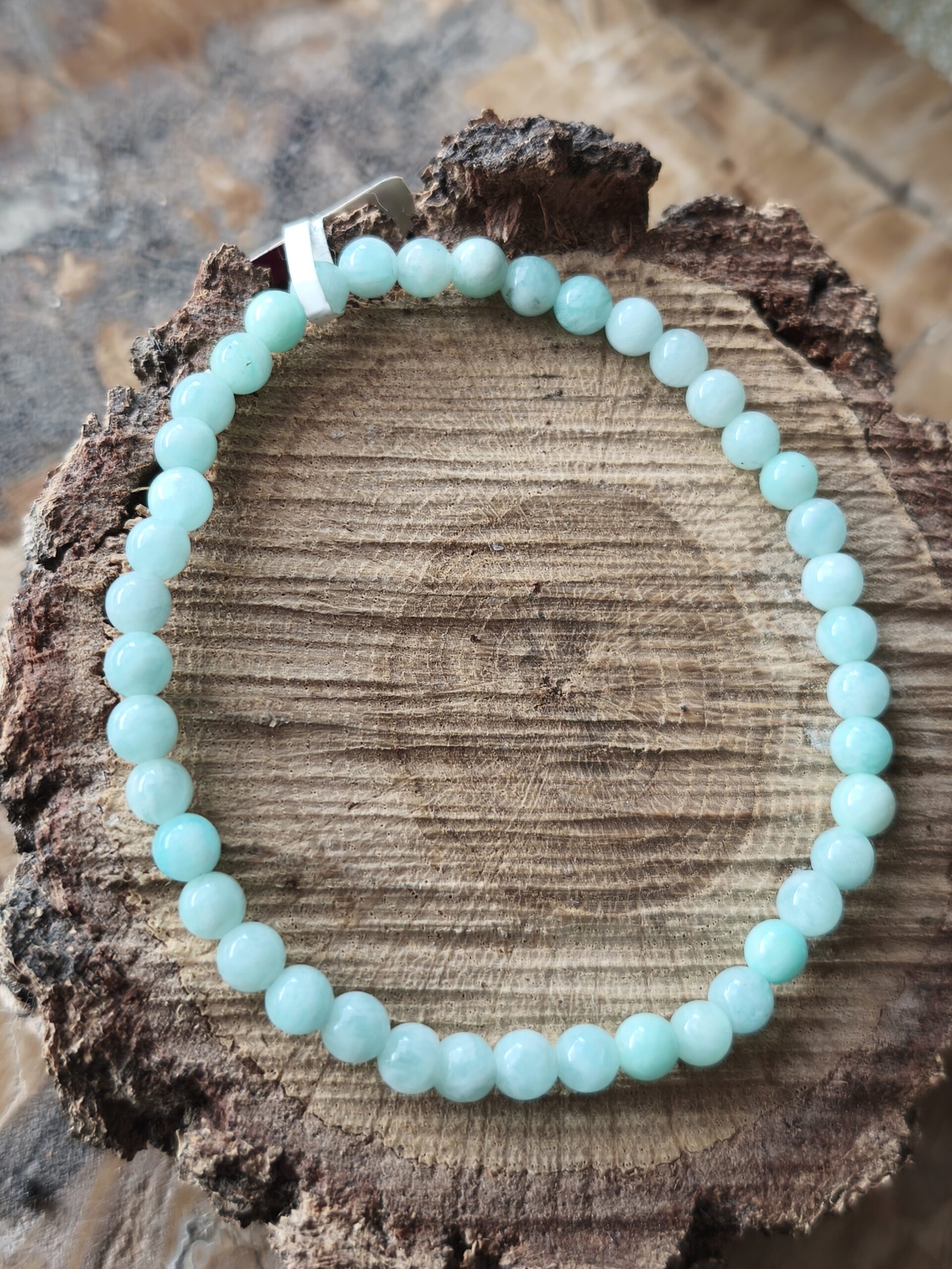| Amazonite extra | Bracelet en Amazonite extra en perles de 4 mm pour un poignet de 17 à 18 cm. |