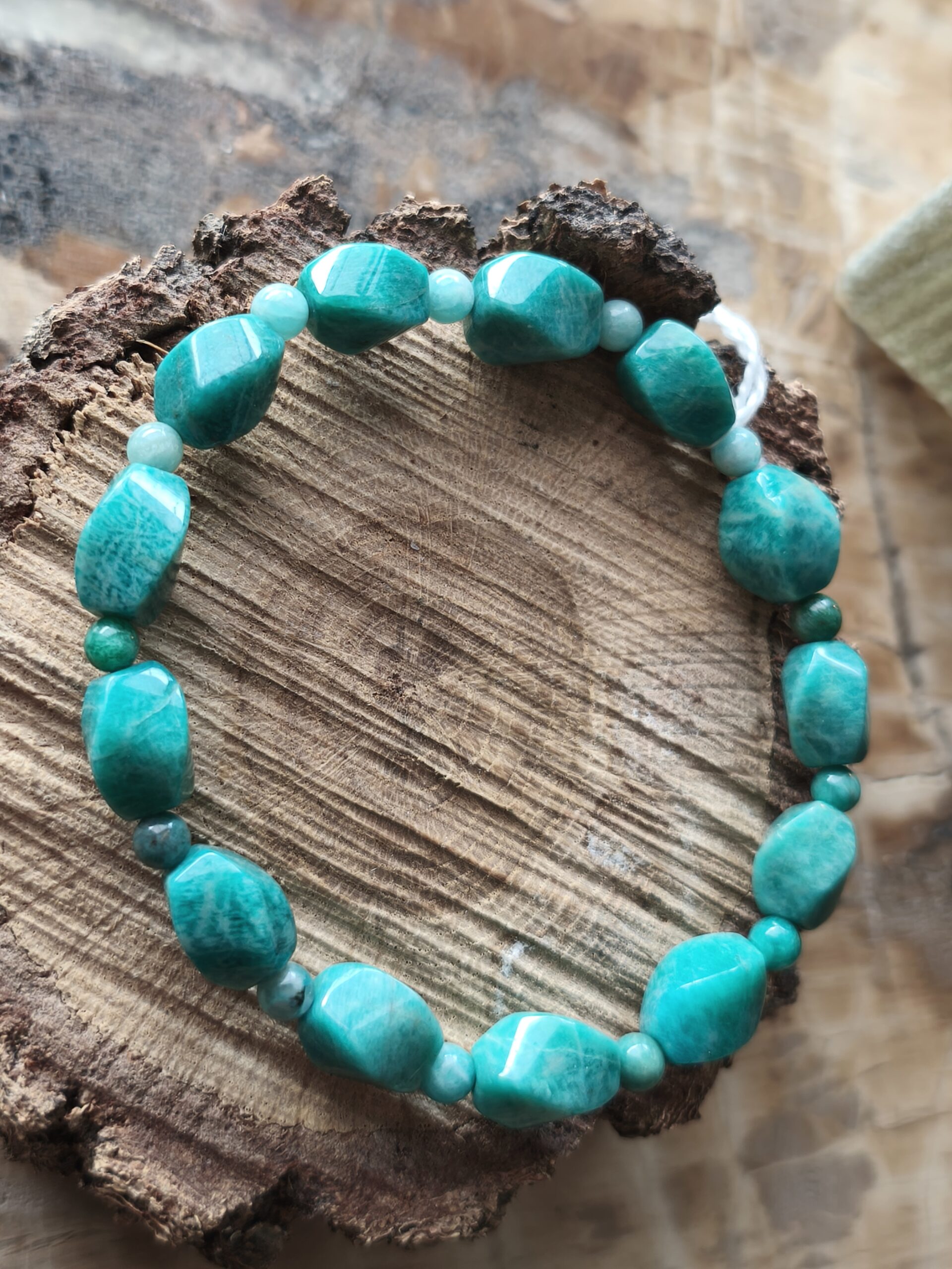 Bracelet en Amazonite en perles torsadées de 8 mm pour un poignet de 18 à 19 cm.