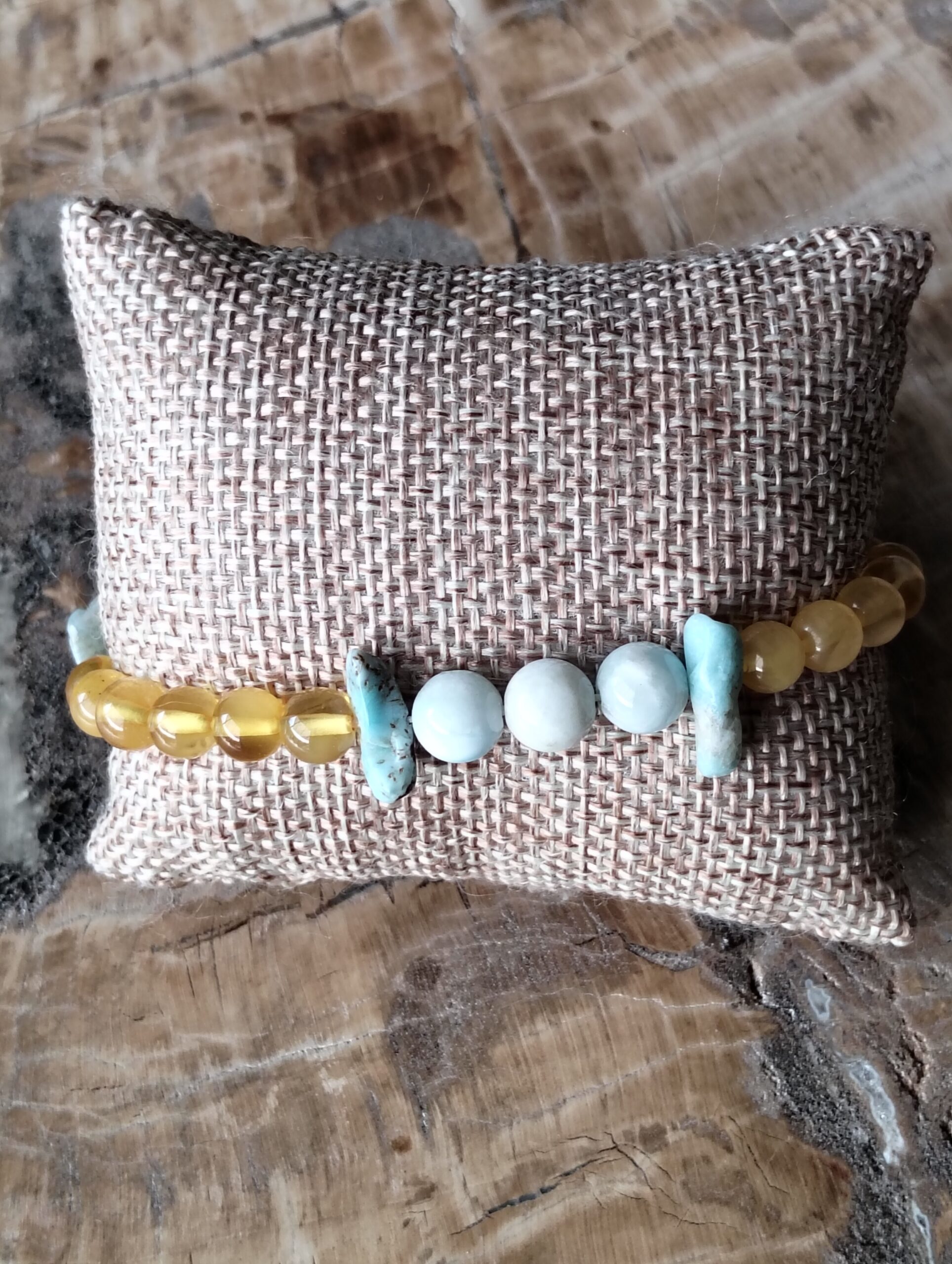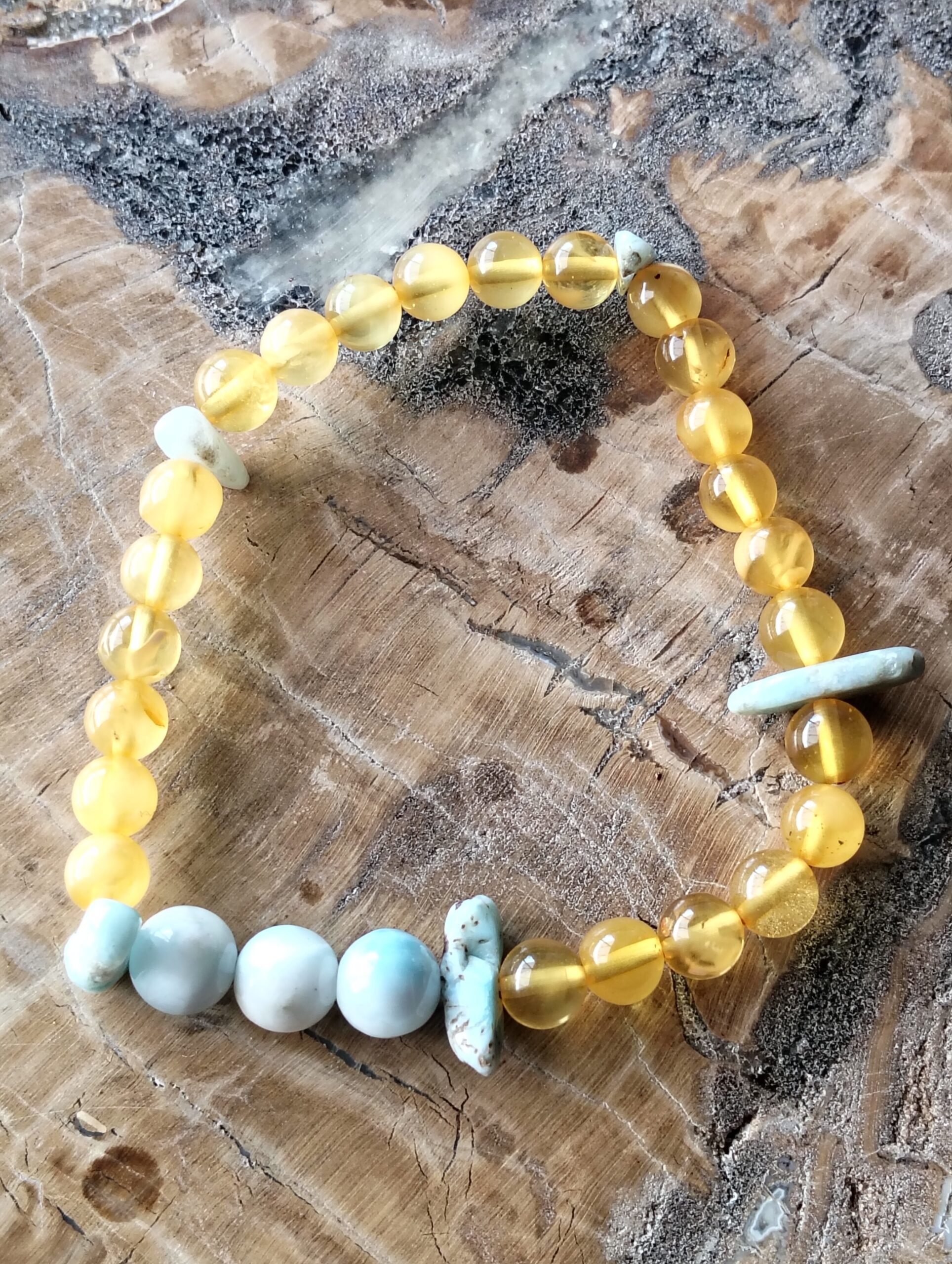 | Bracelet | bracelet en ambre perles de 6 mm et larimar pour un poignet de 18 à 19 cm |