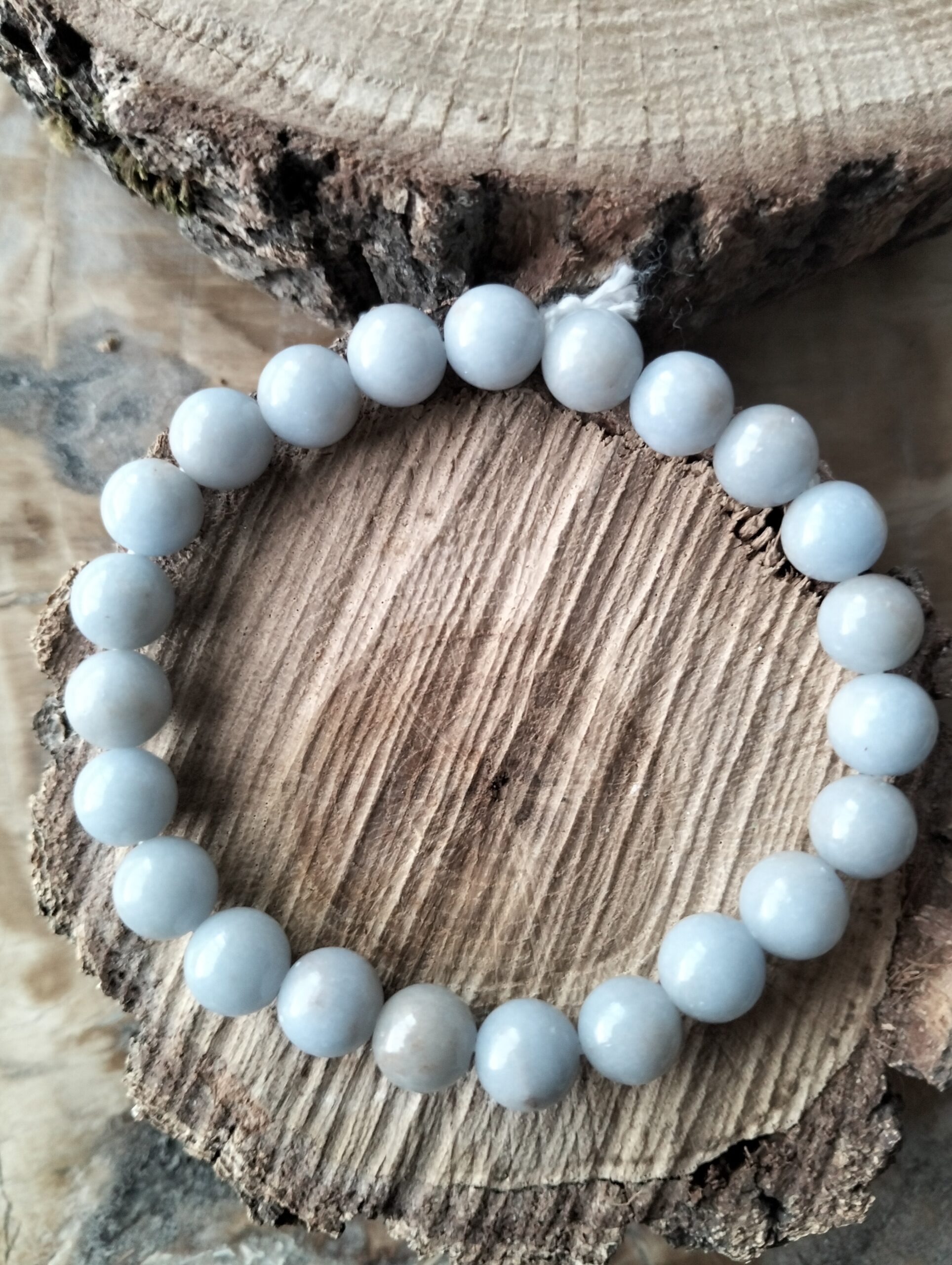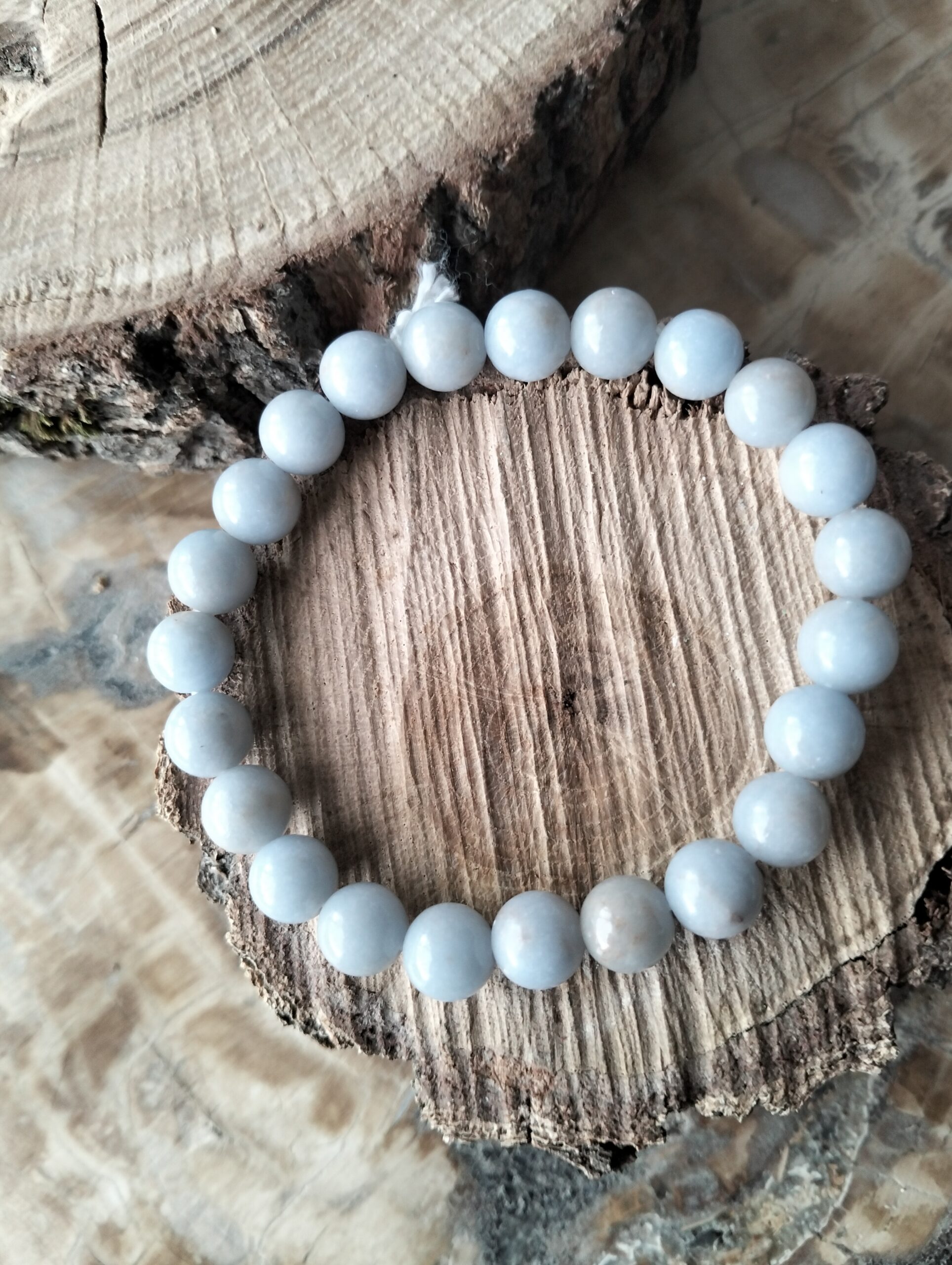 | Angélite | Bracelet en Angélite perles de 8 mm pour un poignet de 18 à 19cm. |