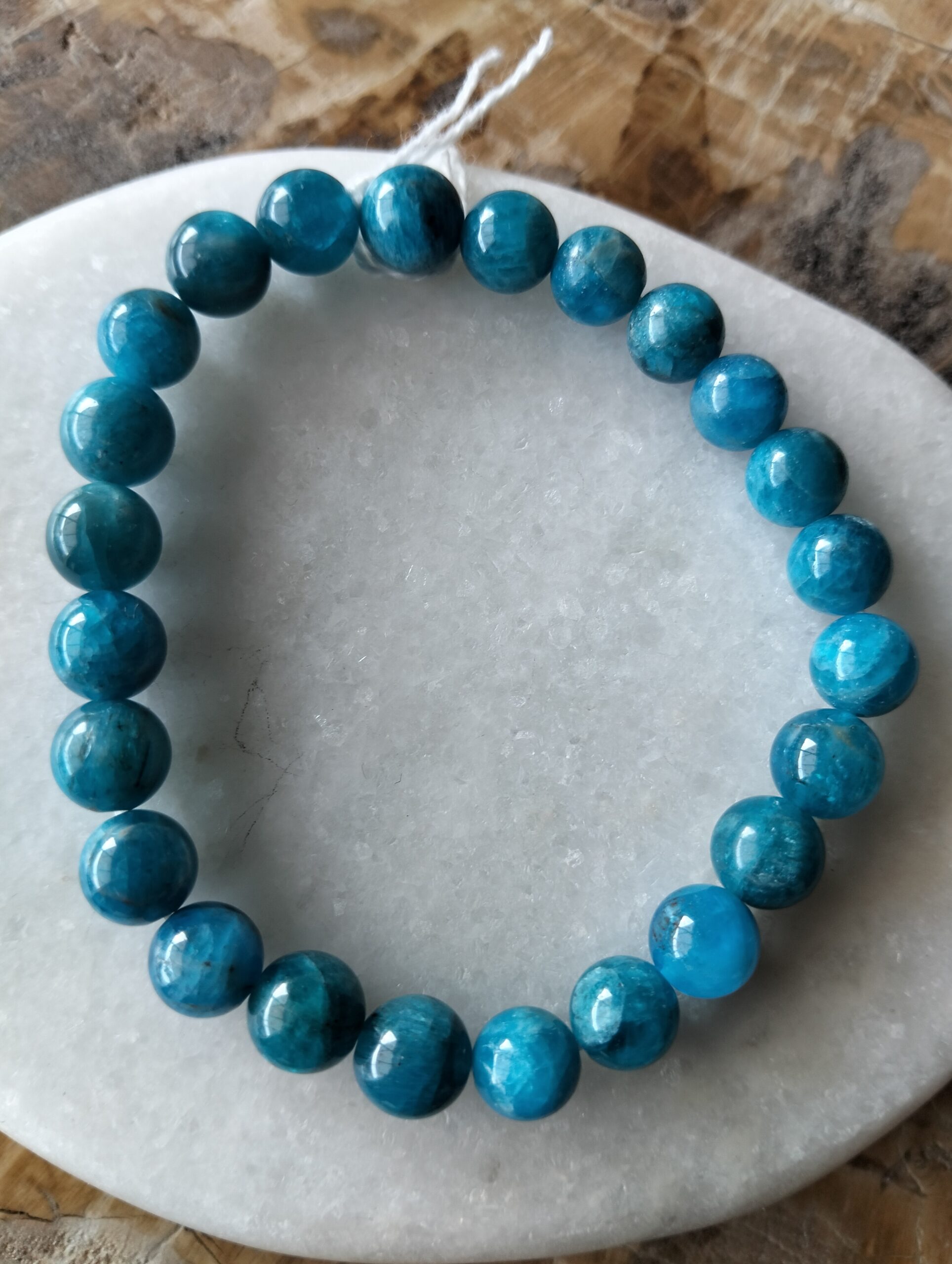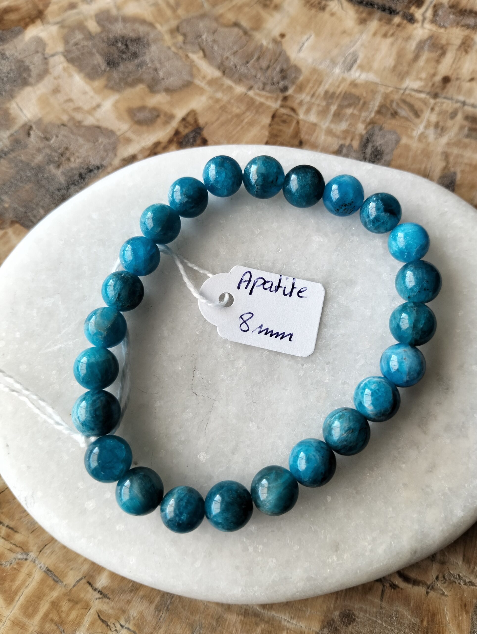 Bracelet en Apatite perles de 8 mm pour un poignet de 18 à 19 cm.