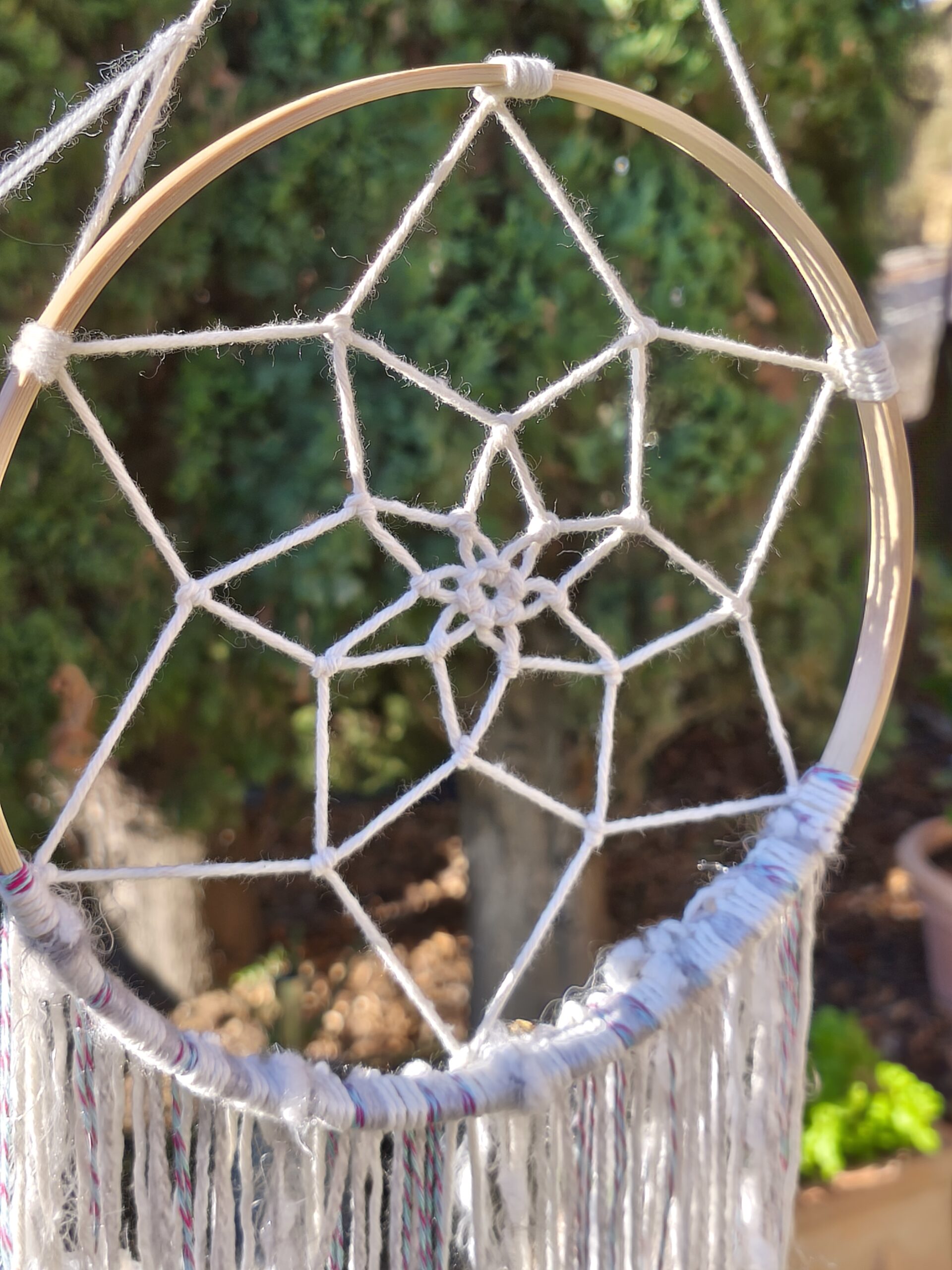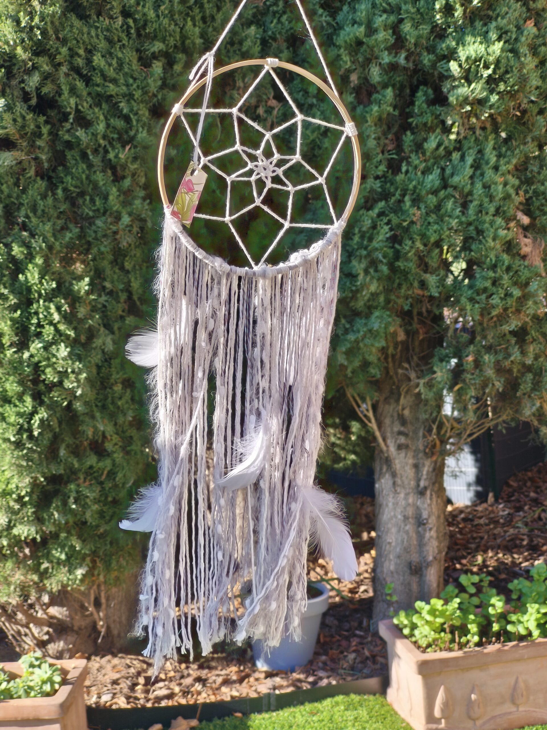 attrape reve artisanal, piece unique. couleur dominante : grise dimension : 68 x 20 cm
