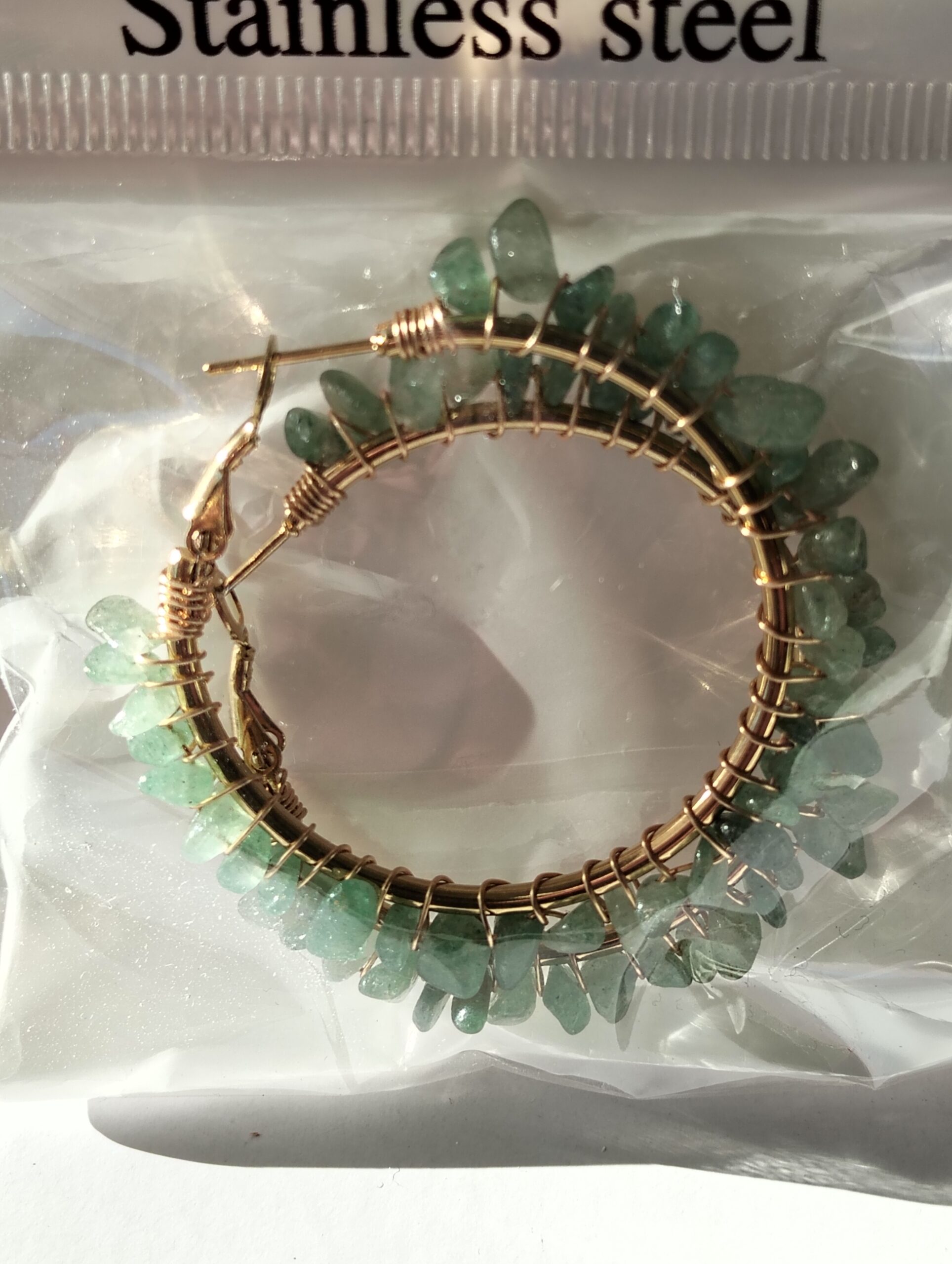 | boucles d'oreilles | Boucles d'oreilles en Aventurine verte pierres Baroques monté acier doré. |