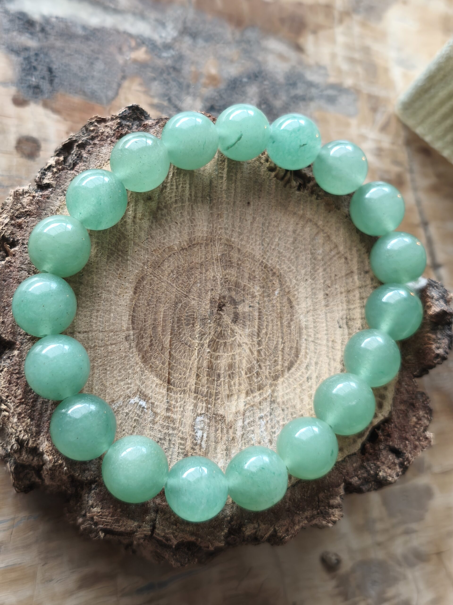 | Aventurine | Bracelet en aventurine verte perles de 10 mm pour un poignet de 18 à 19 cm. |