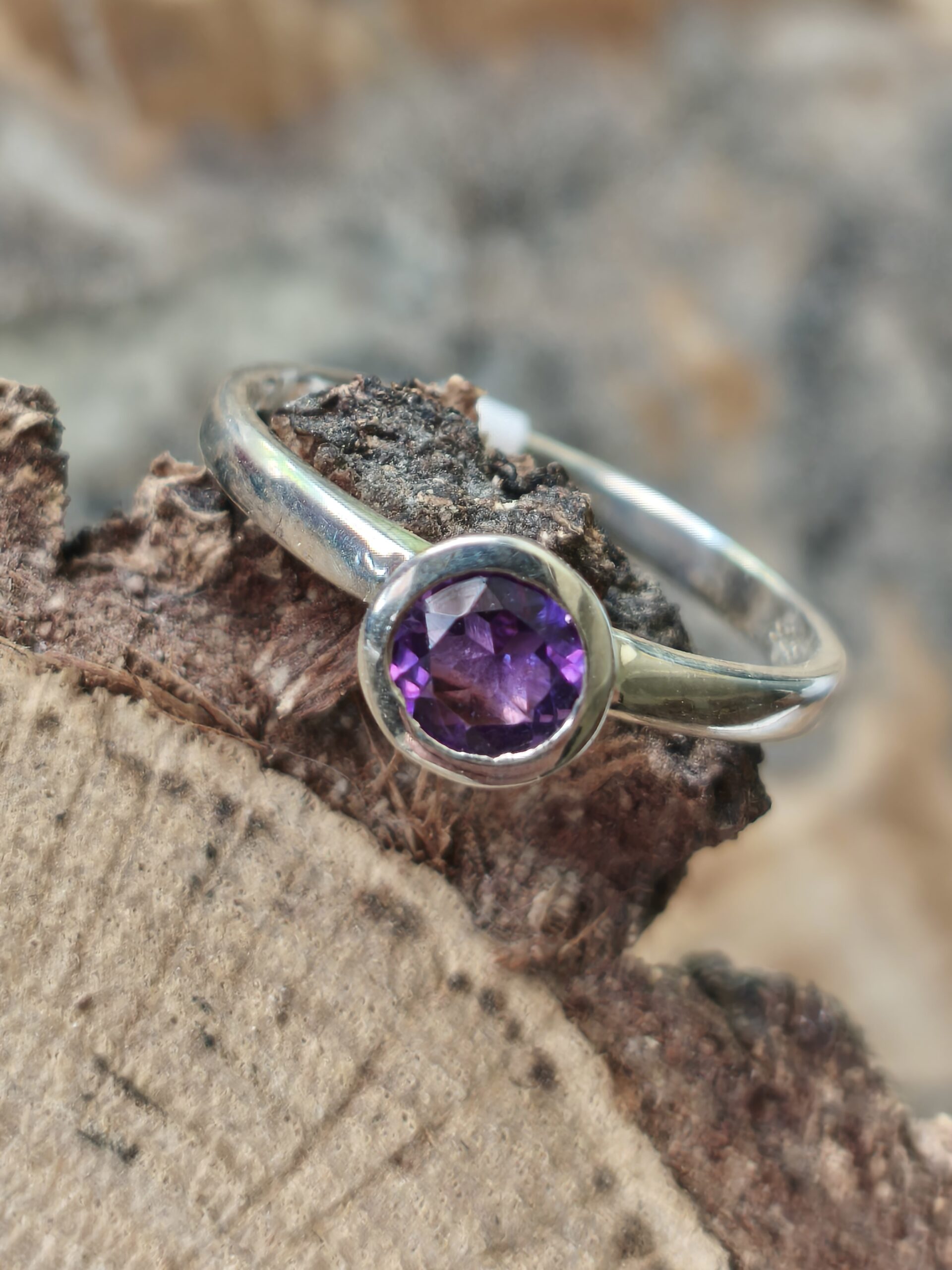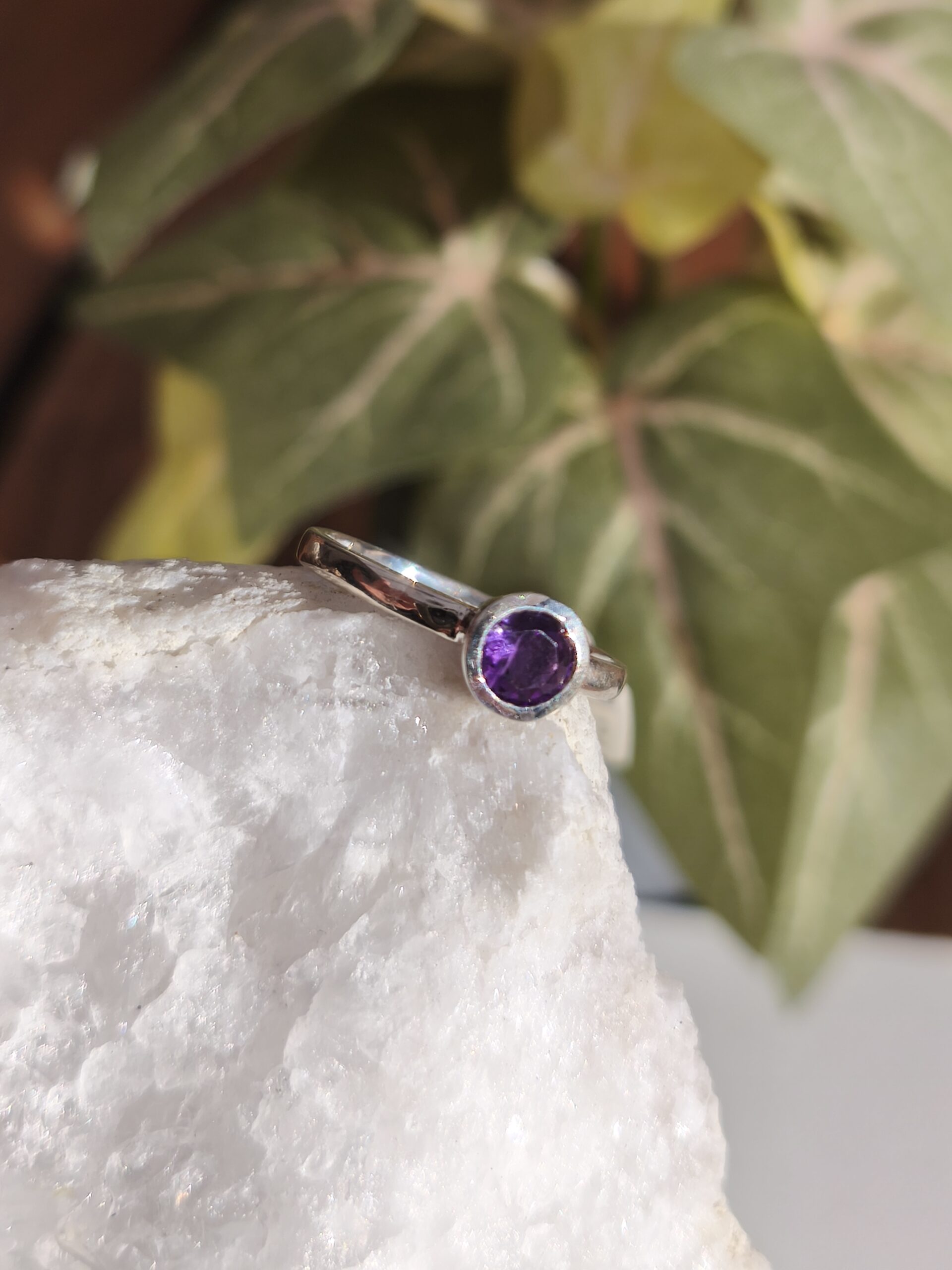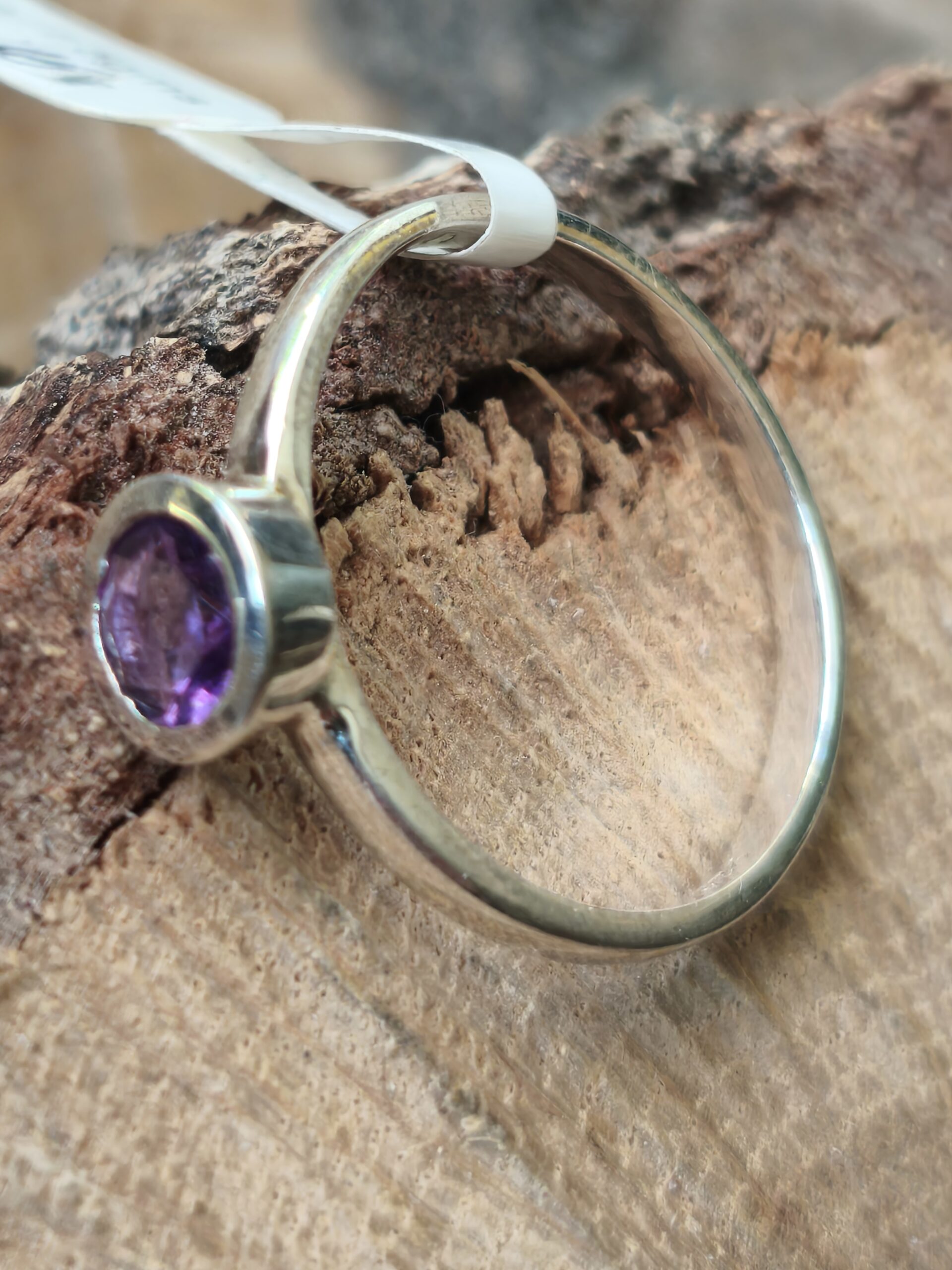 | bague | bague ronde en amethyste du bresil montée sur argent 925. |
