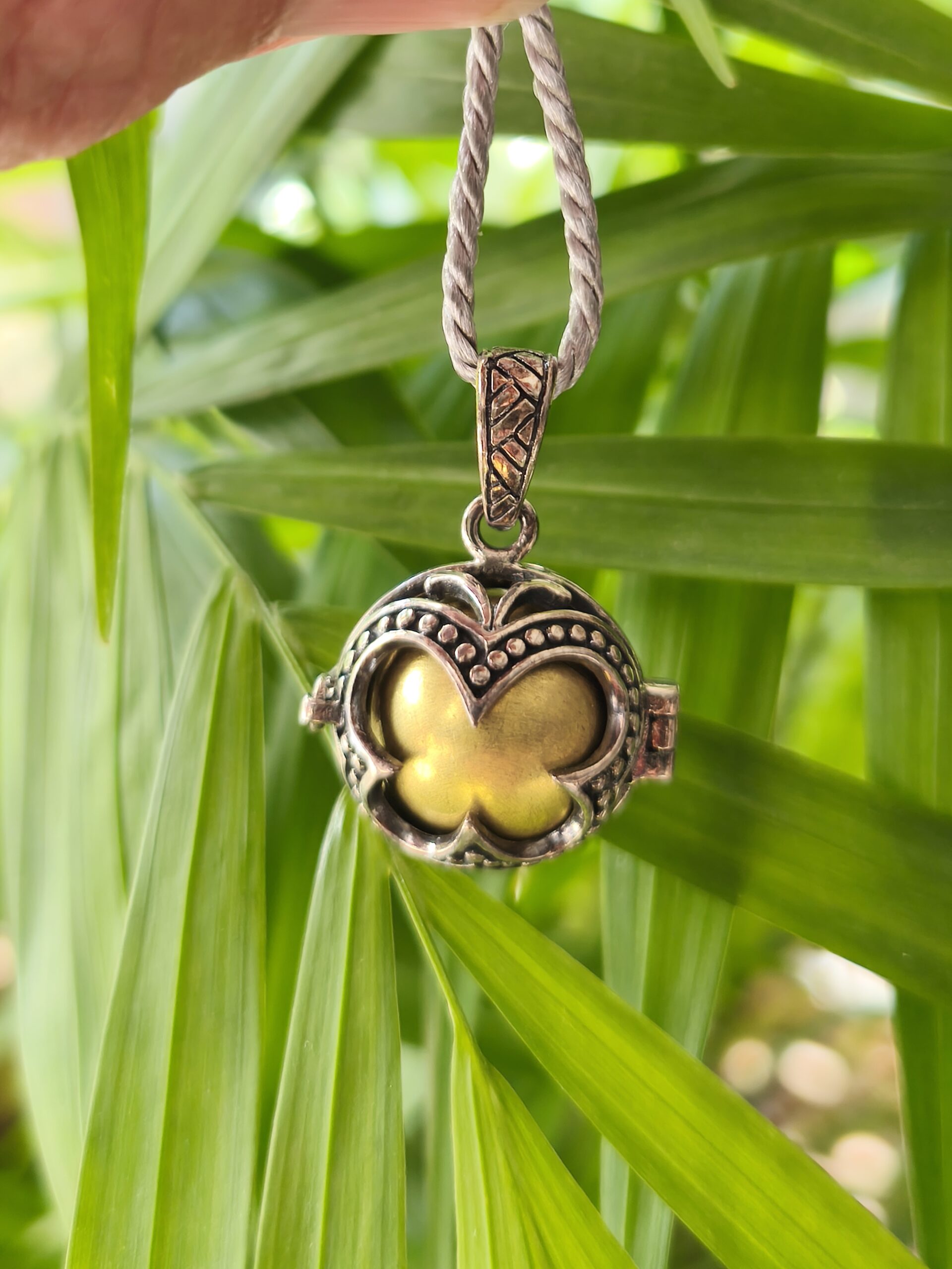 bola de grossesse en argent et grelot doré cordon offert