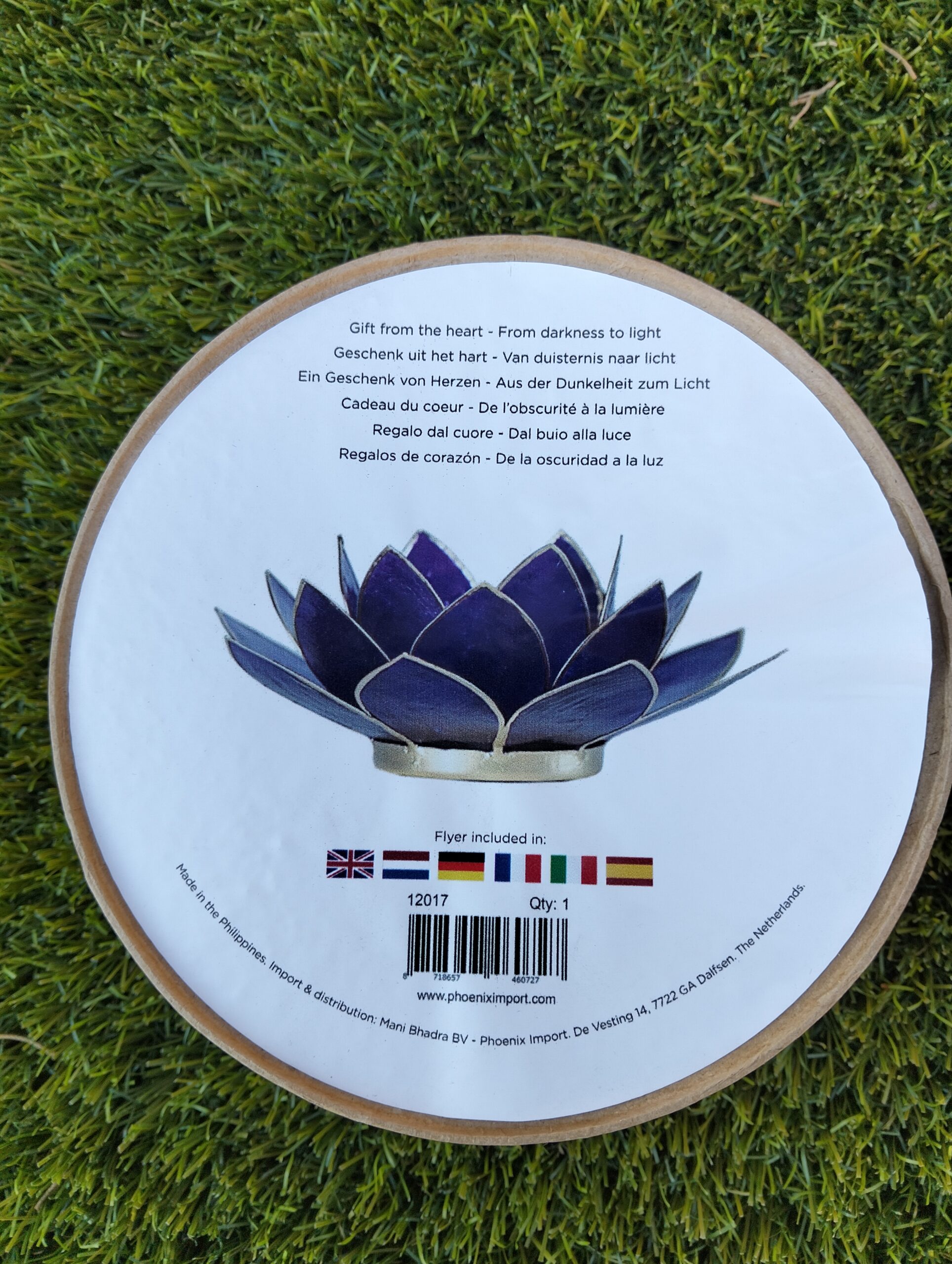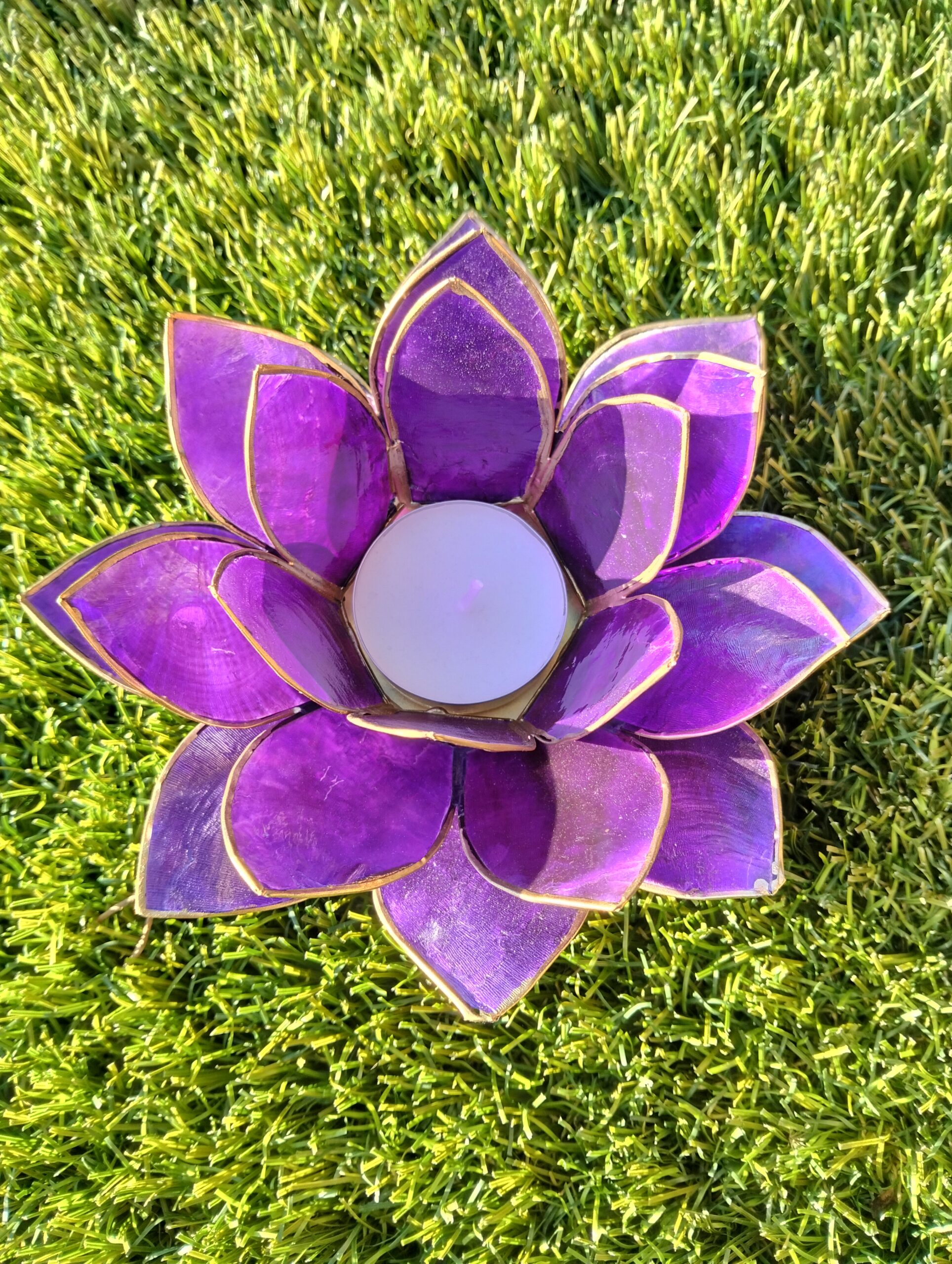 | bougeoir | bougeoir en nacre fleur de lotus violet signifie paix et favorise l'eveil spirituel, relié au chakra coronal (sahasrara) |
