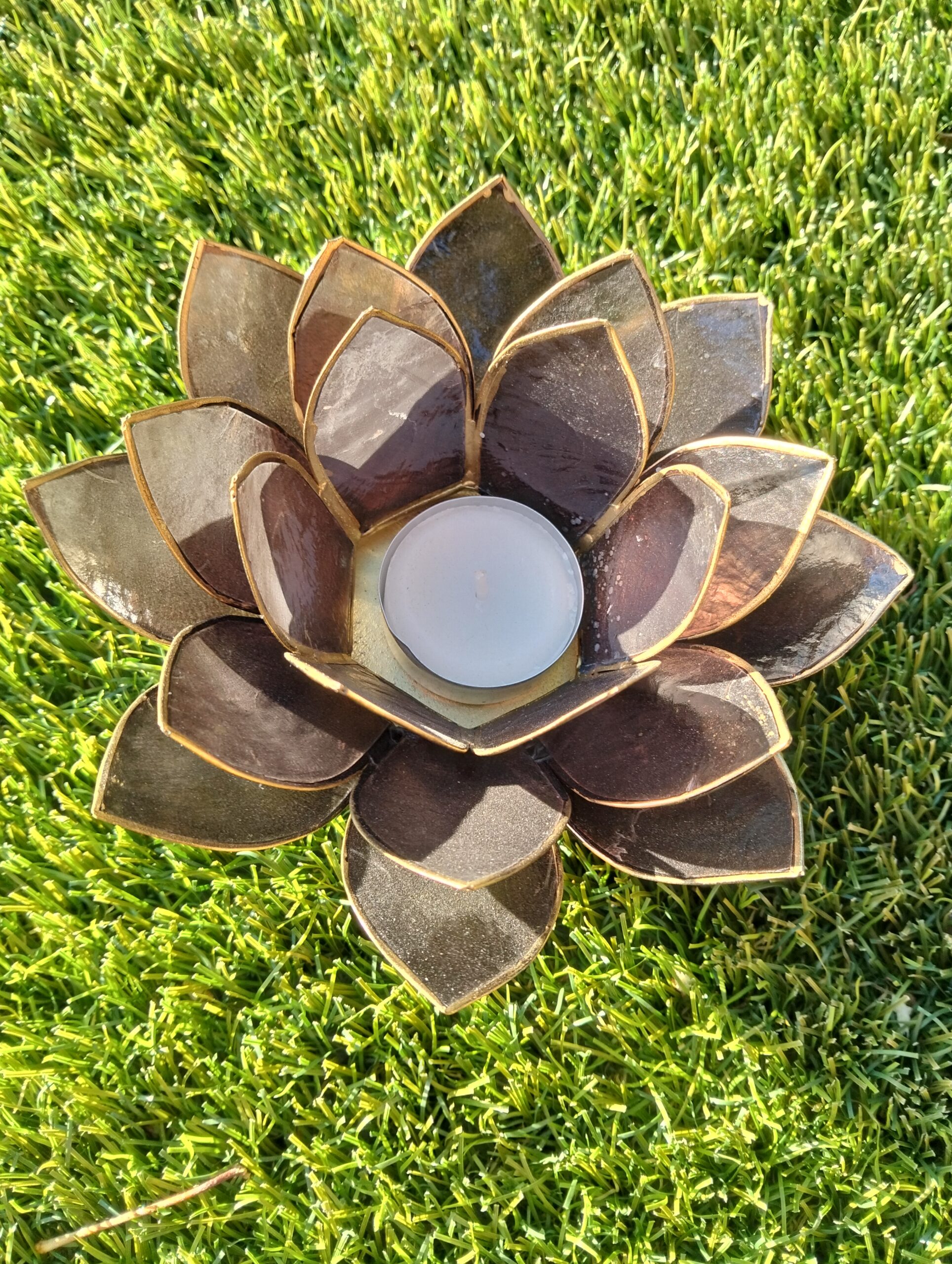 | bougeoir | bougeoir en nacre fleur de lotus noir signifie protection et encrage, relié au chaka racine (muladhara) |
