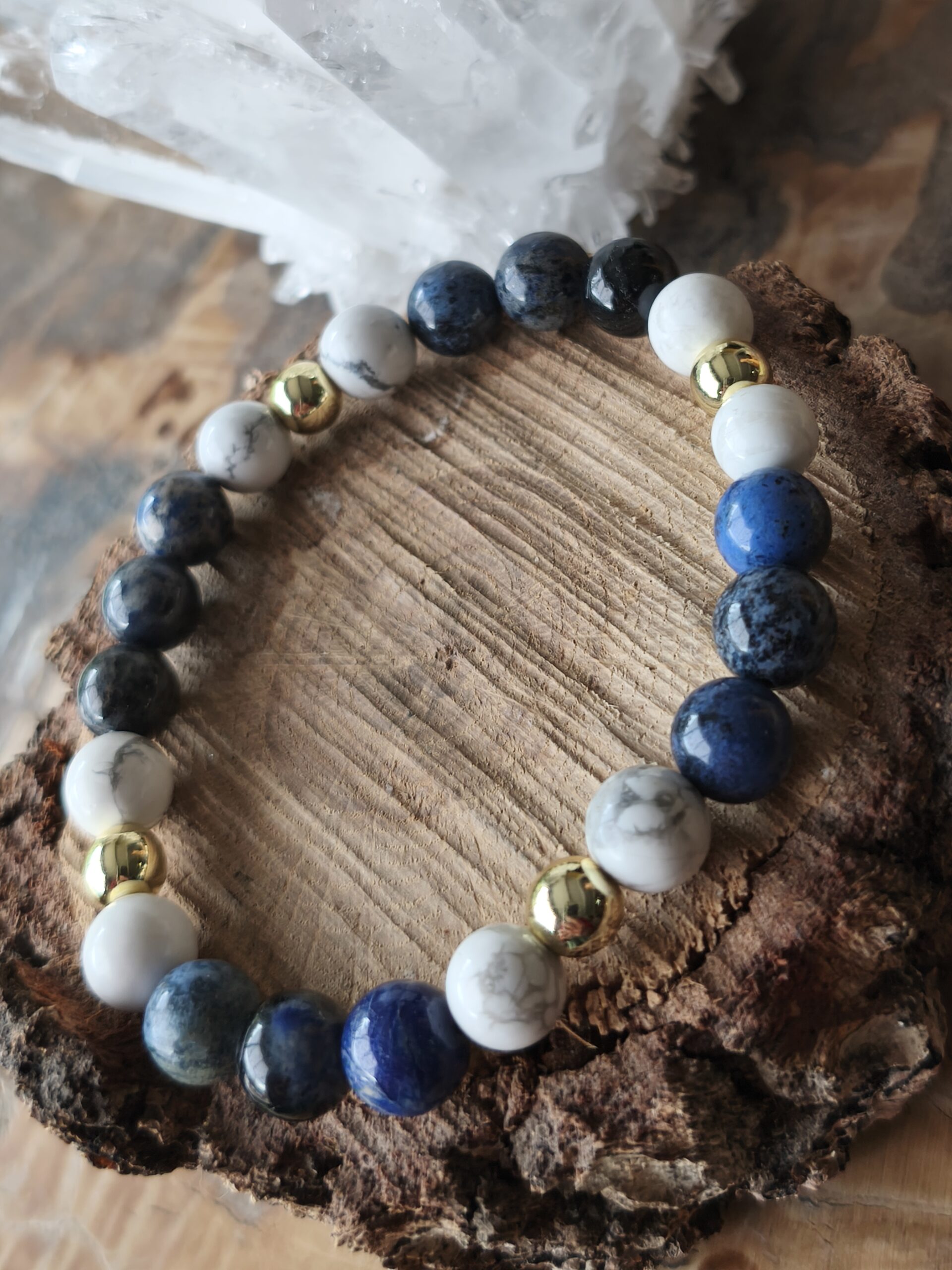 Dumortiérite / Howlite bracelet perles dorées