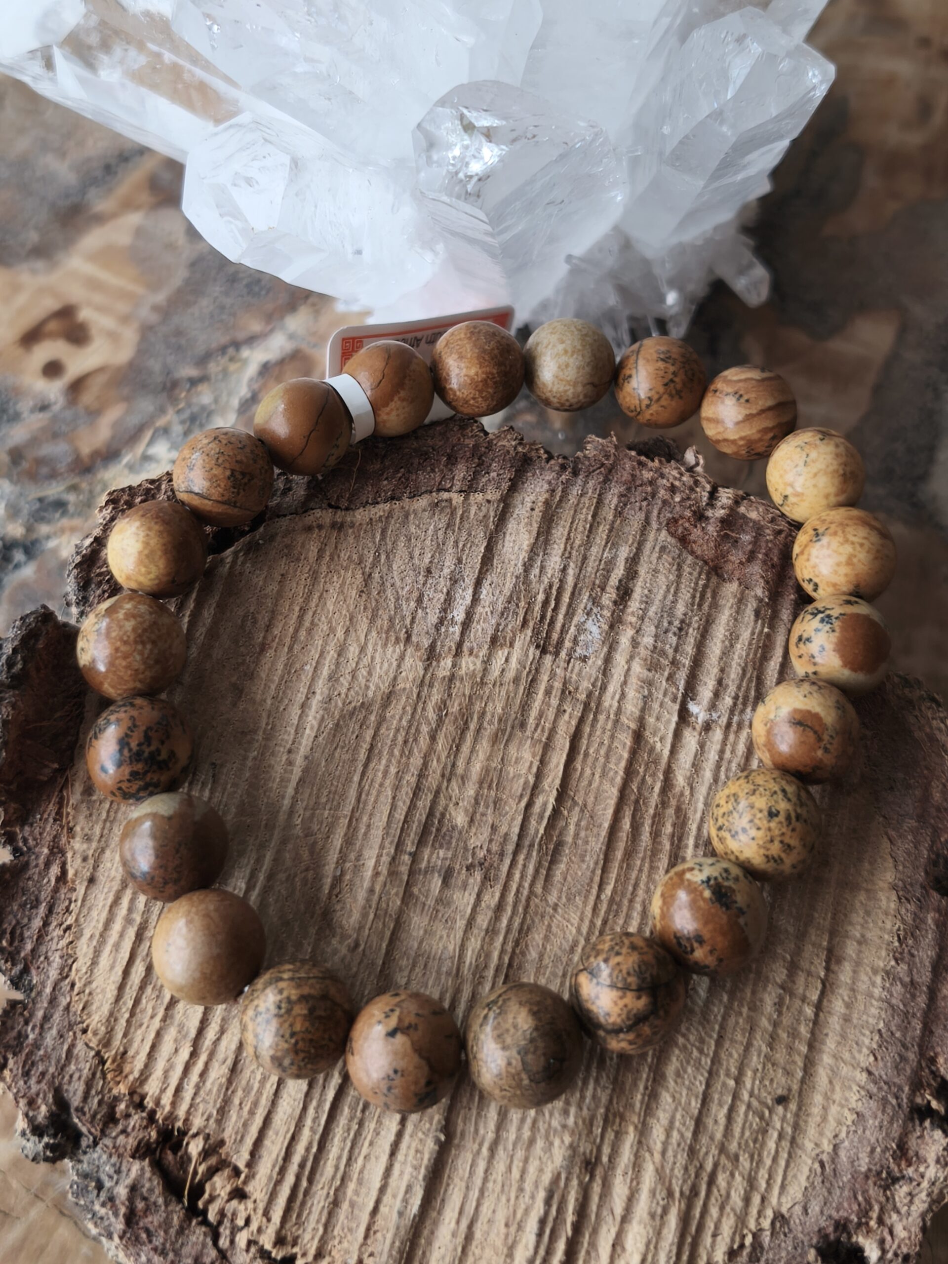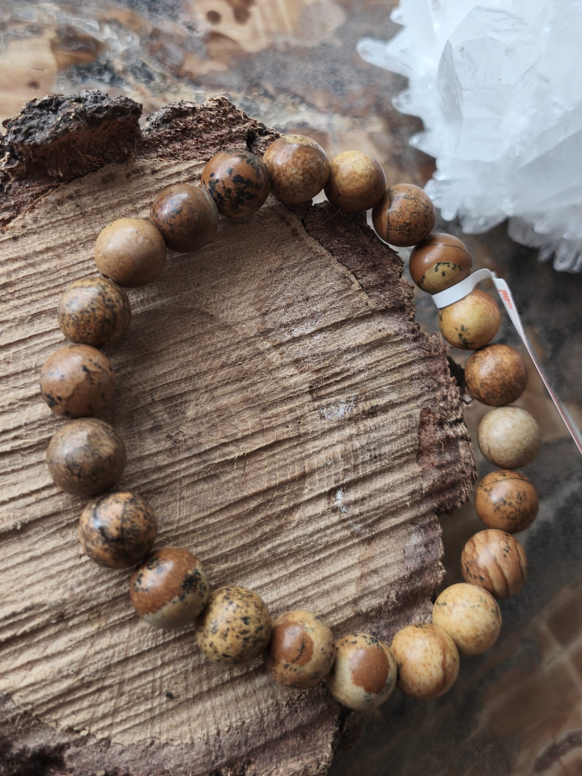| Bracelet | bracelet en jaspe paysage d'afrique du sud en perles de 8 mm, pour un poignet de 18 à 19 cm. |