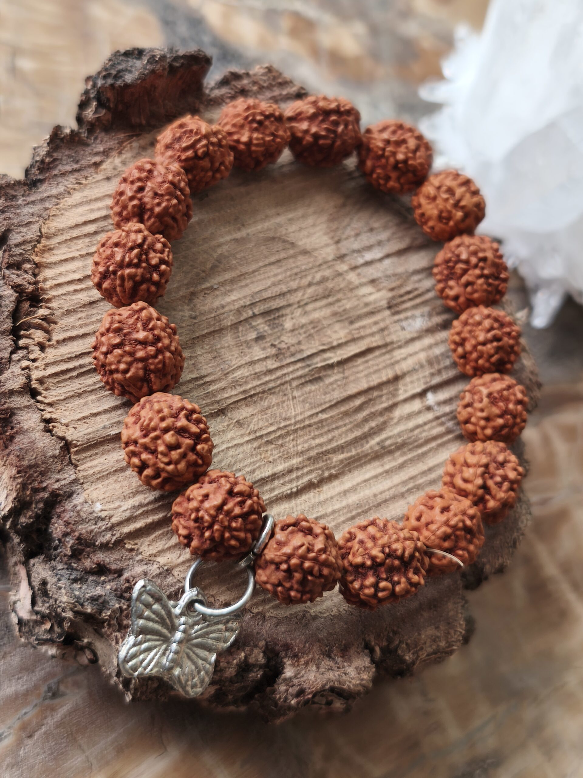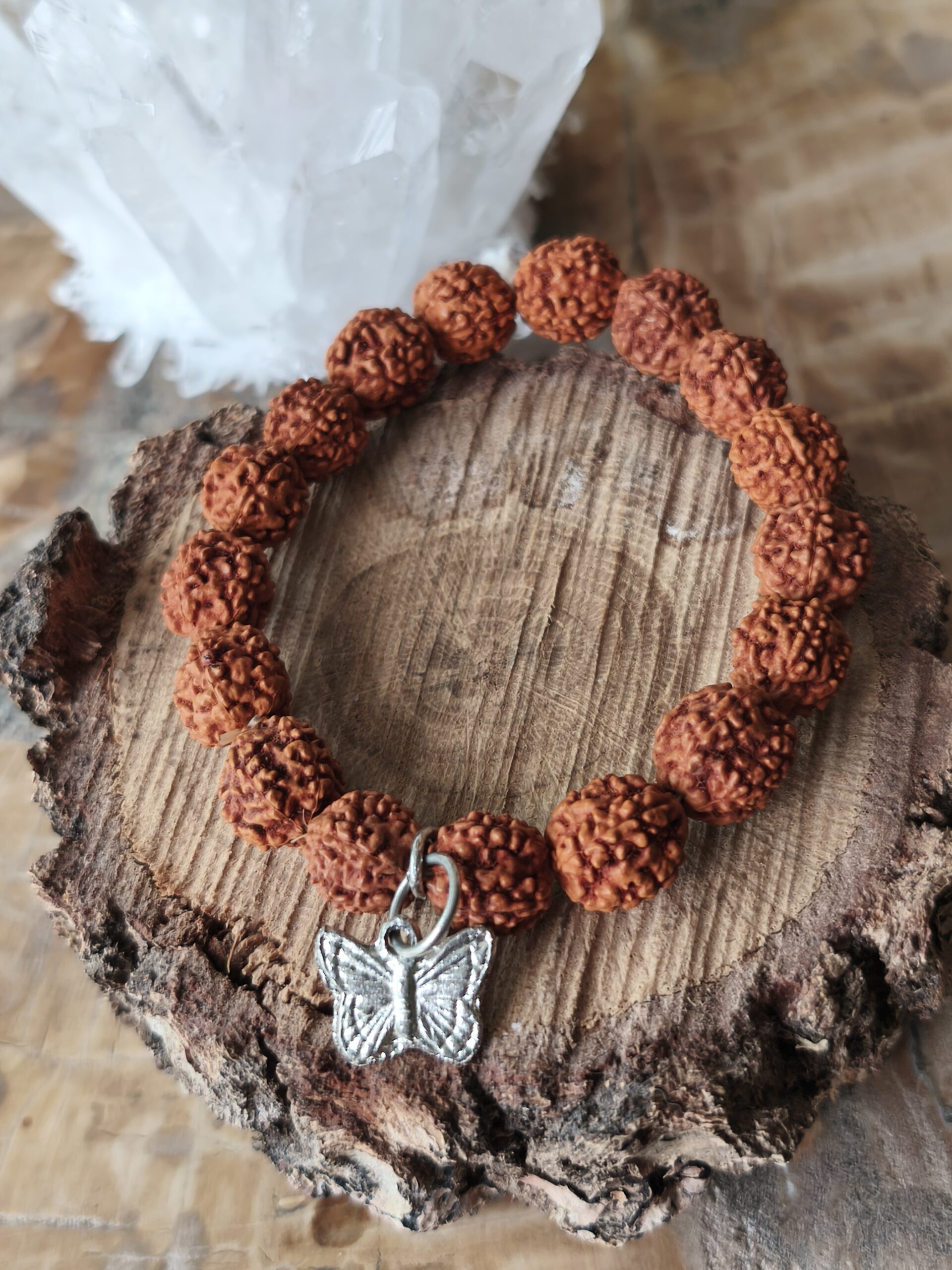 bracelet graine de rudraksha / papillon
