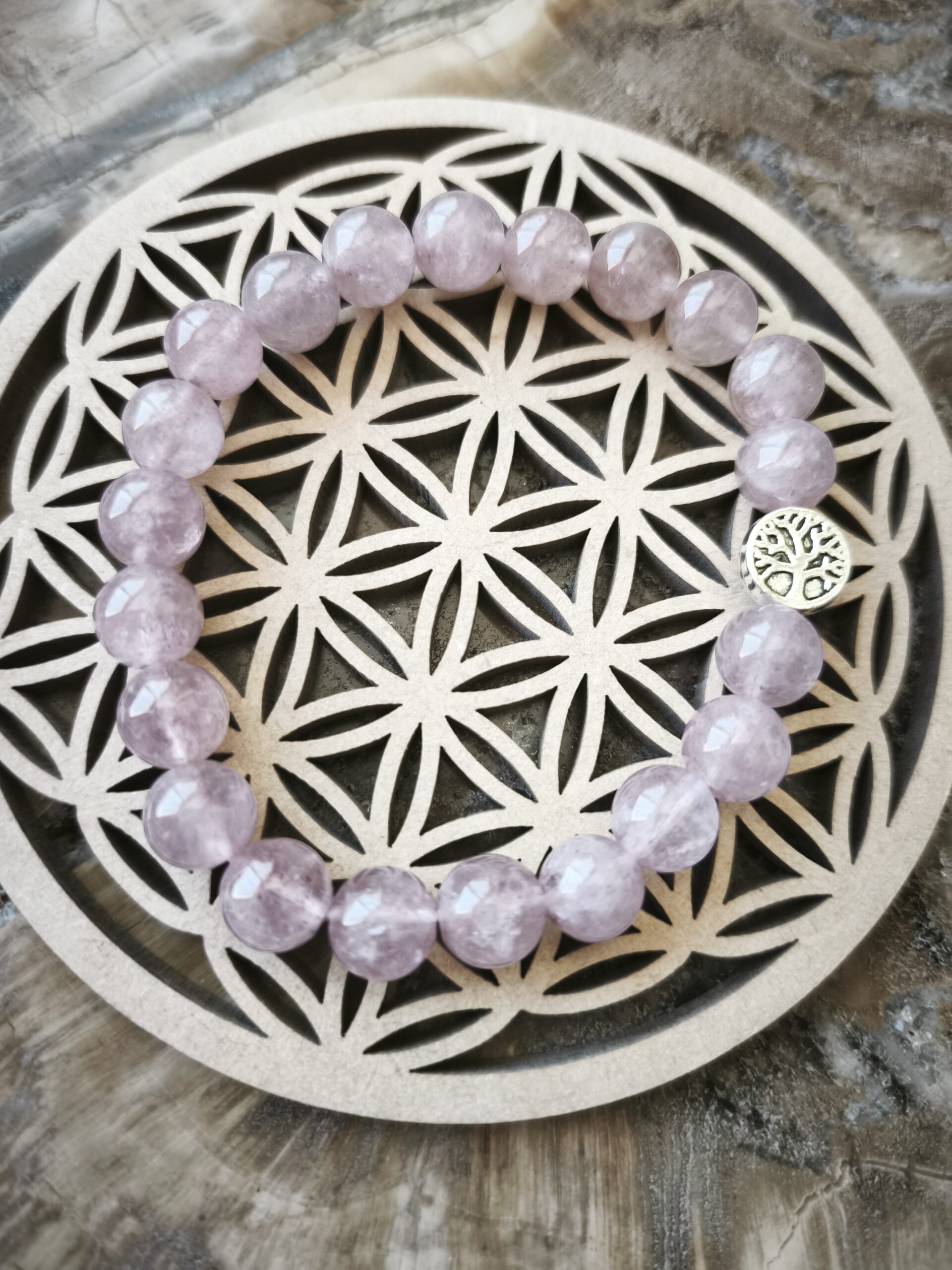 | Bracelet | bracelet en quartz fraise perles 8 mm avec arbre de vie. |