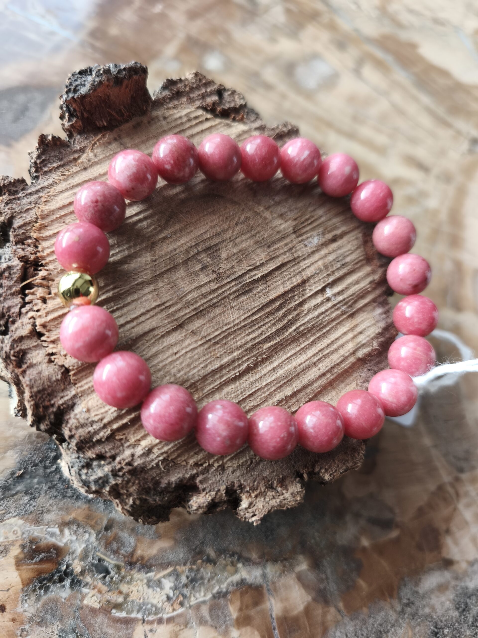| Bracelet | bracelet thulite en perles de 8 mm et une perle hématite dorée. |