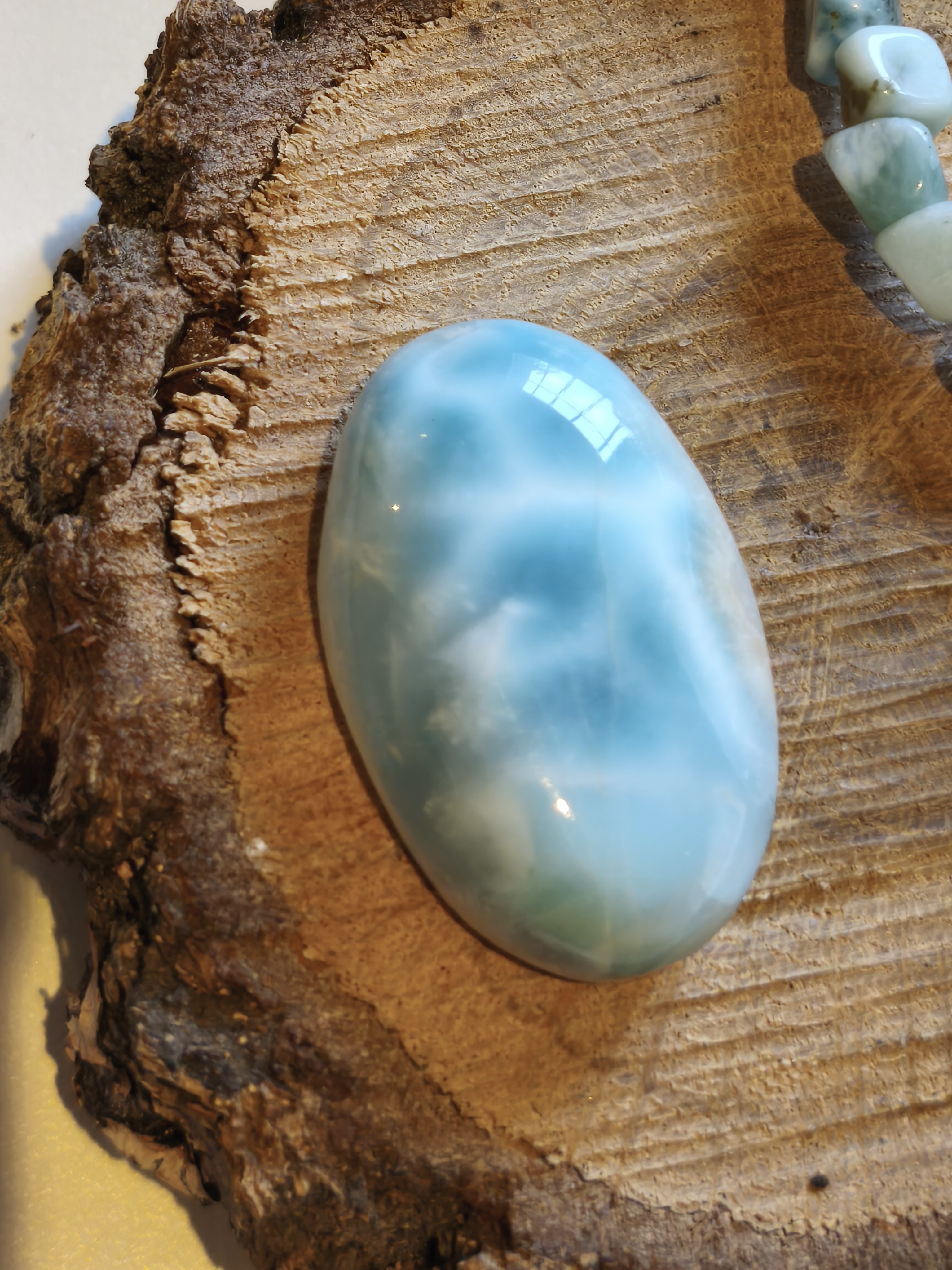| cabochon | tres beau cabochon en larimar de republique dominicaine à poser ou a monter en bijoux. |