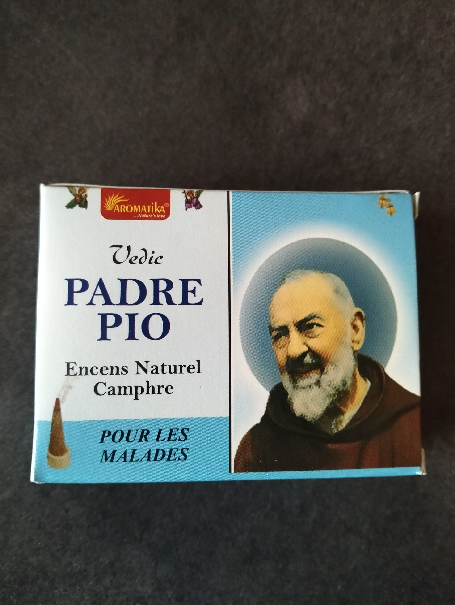| encens | encens saint ( padre pio ) senteur camphe boite de 10 cônes |