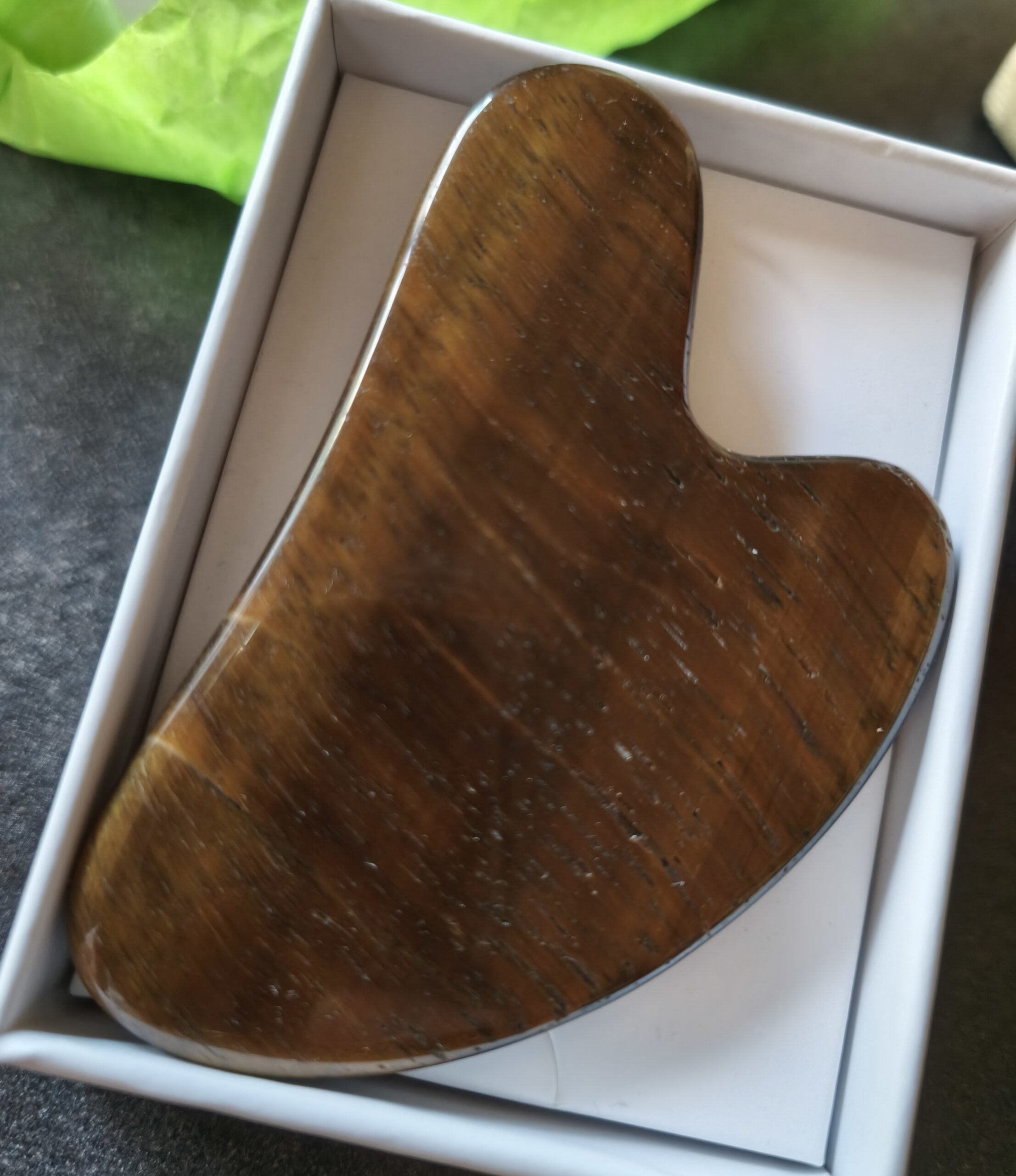 | gua sha | gua sha en oeil de tigre est recommandé pour ses effets positifs sur la circulation et l'amelioration de la texture de la peau dans une routine de soins… |