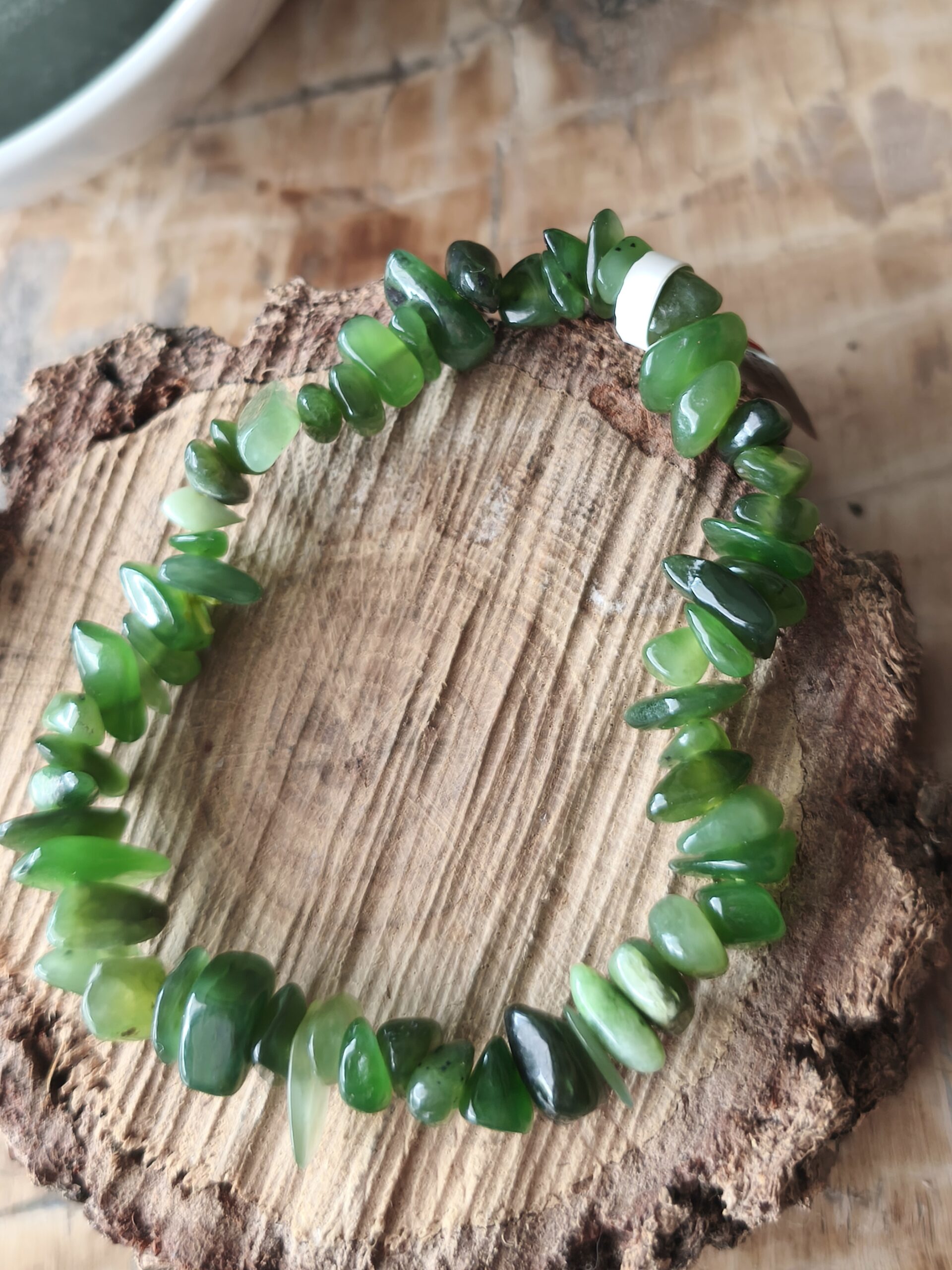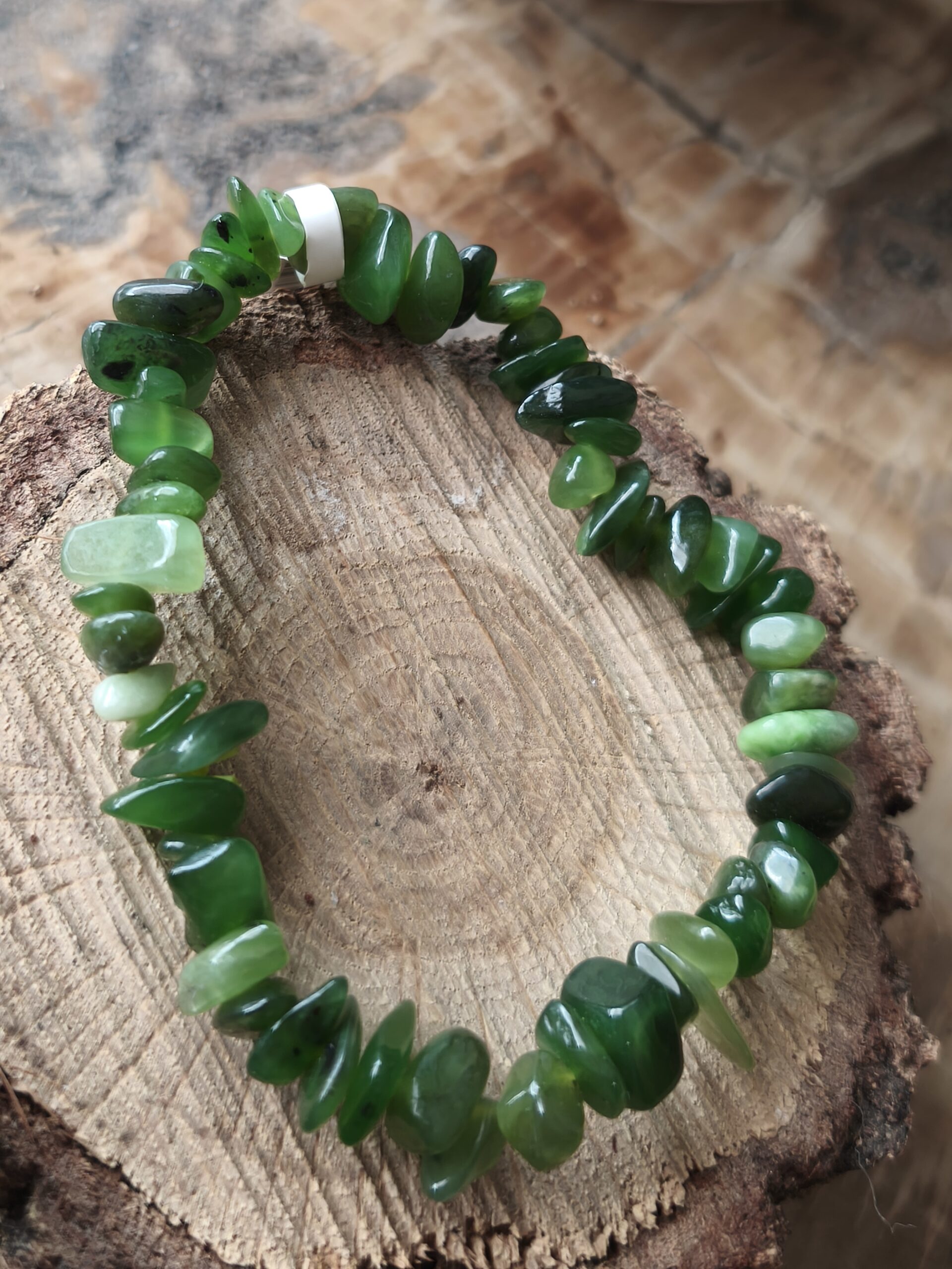 | Jade néphrite | Bracelet en jade néphrite baroque pour un poignet de 18 à 19 cm. |