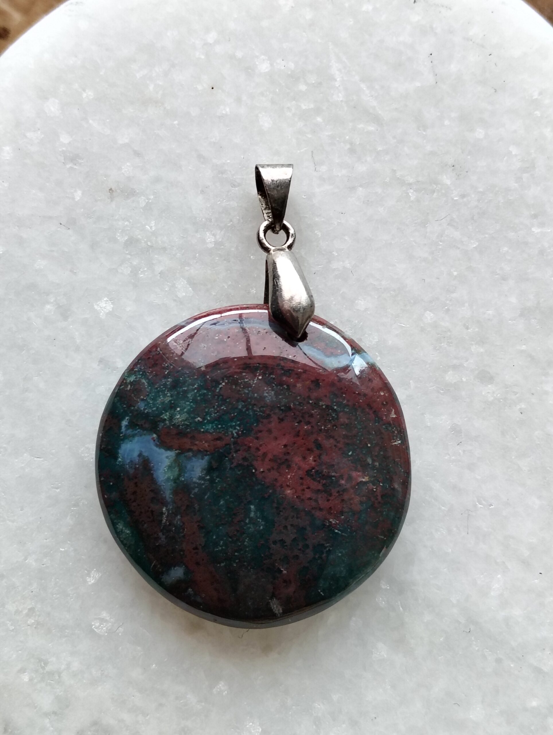 Pendentif en jaspe océan en forme ronde.