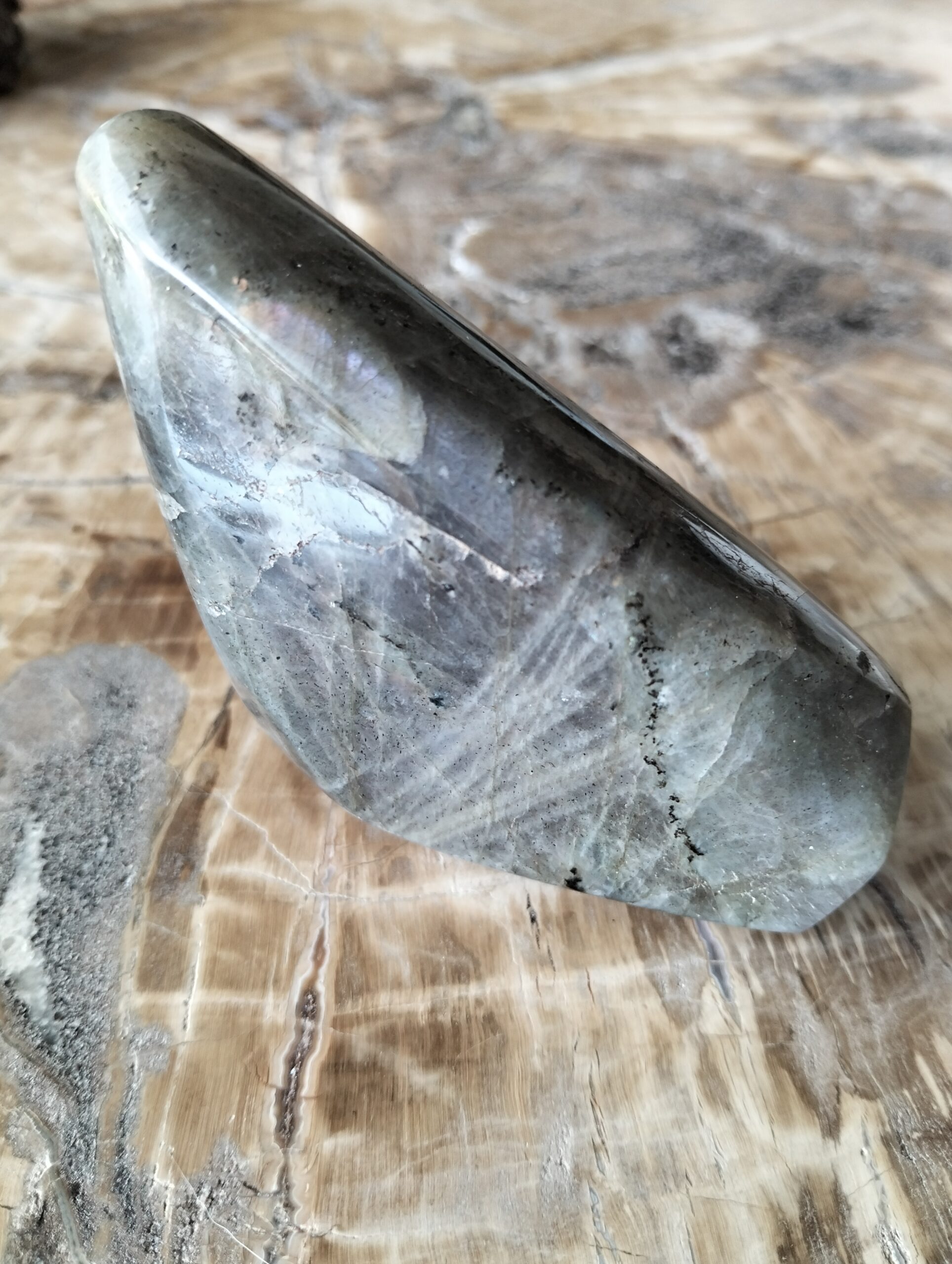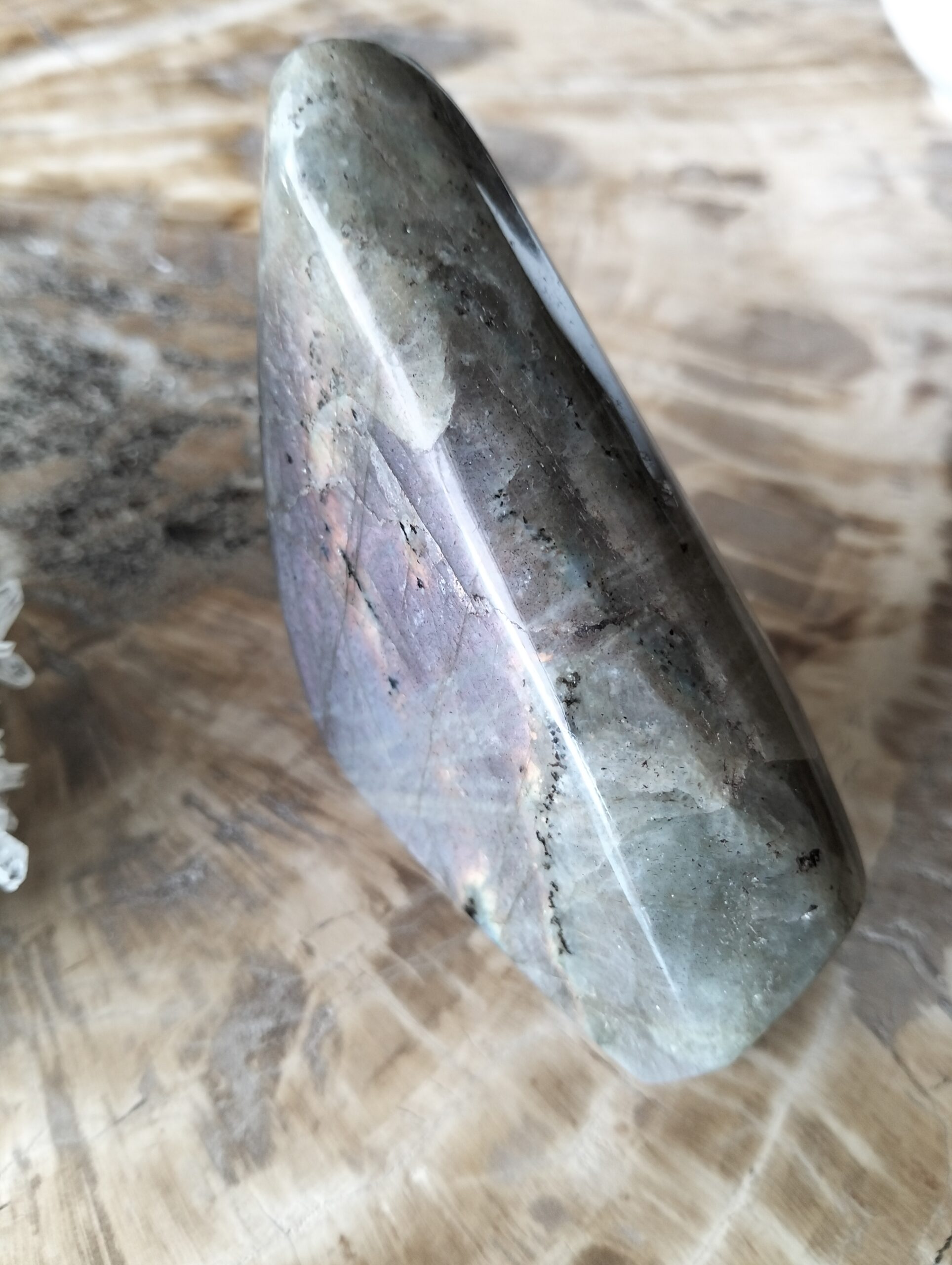 | bloc | labradorite grise forme libre reflets roses de 232g |