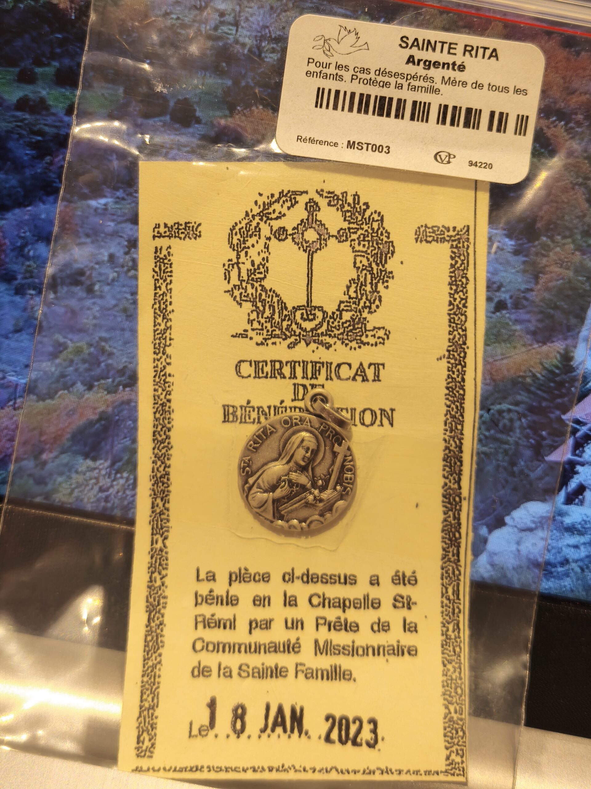 | medaille | medaille Ste Rita avec certificat de benediction, Ste Rita pour les cas désespérés. Mère de tous les enfants. Protège la famille… |
