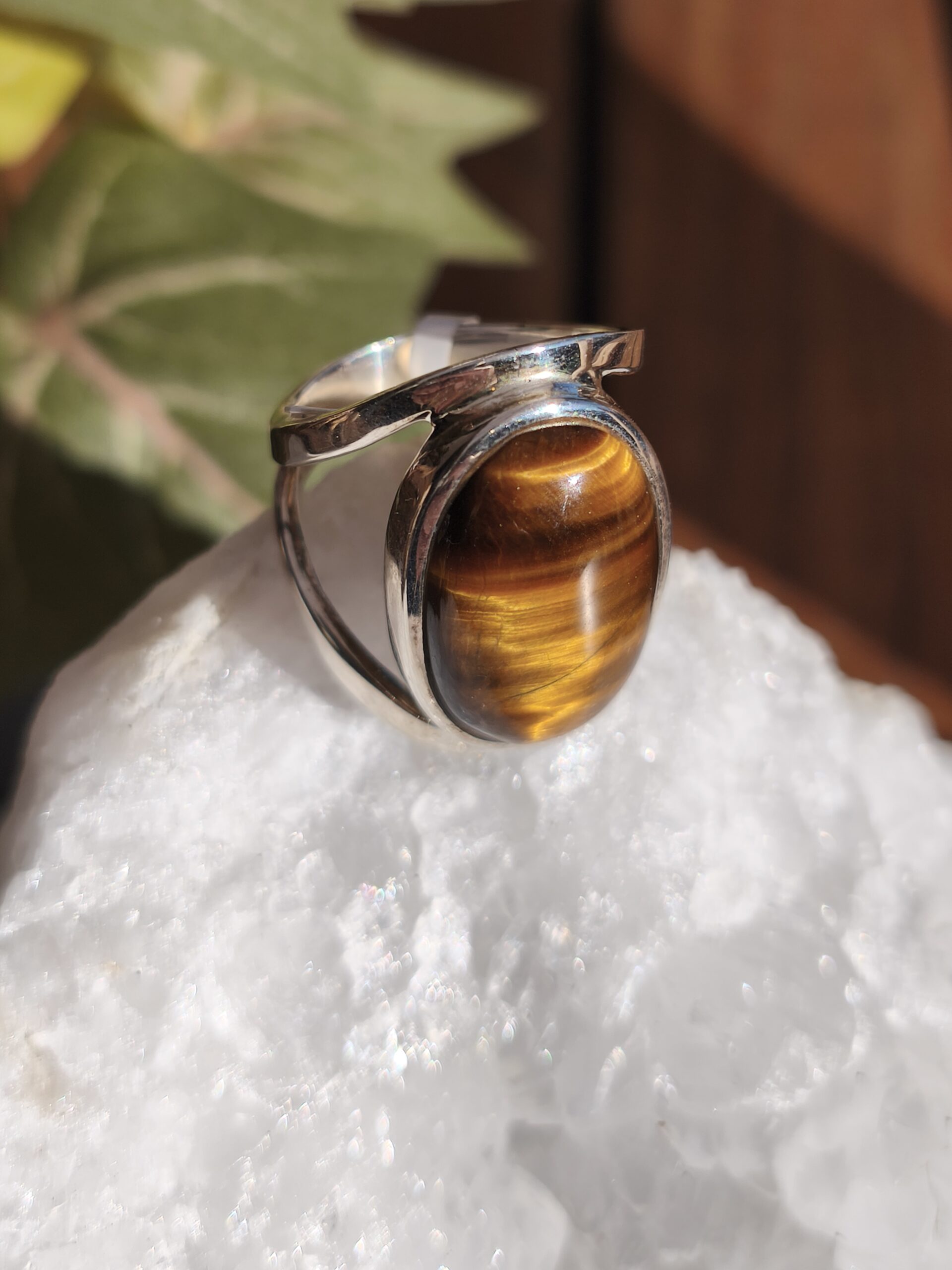 | oeil de tigre | Bague en oeil de tigre montée sur argent taille 56. |