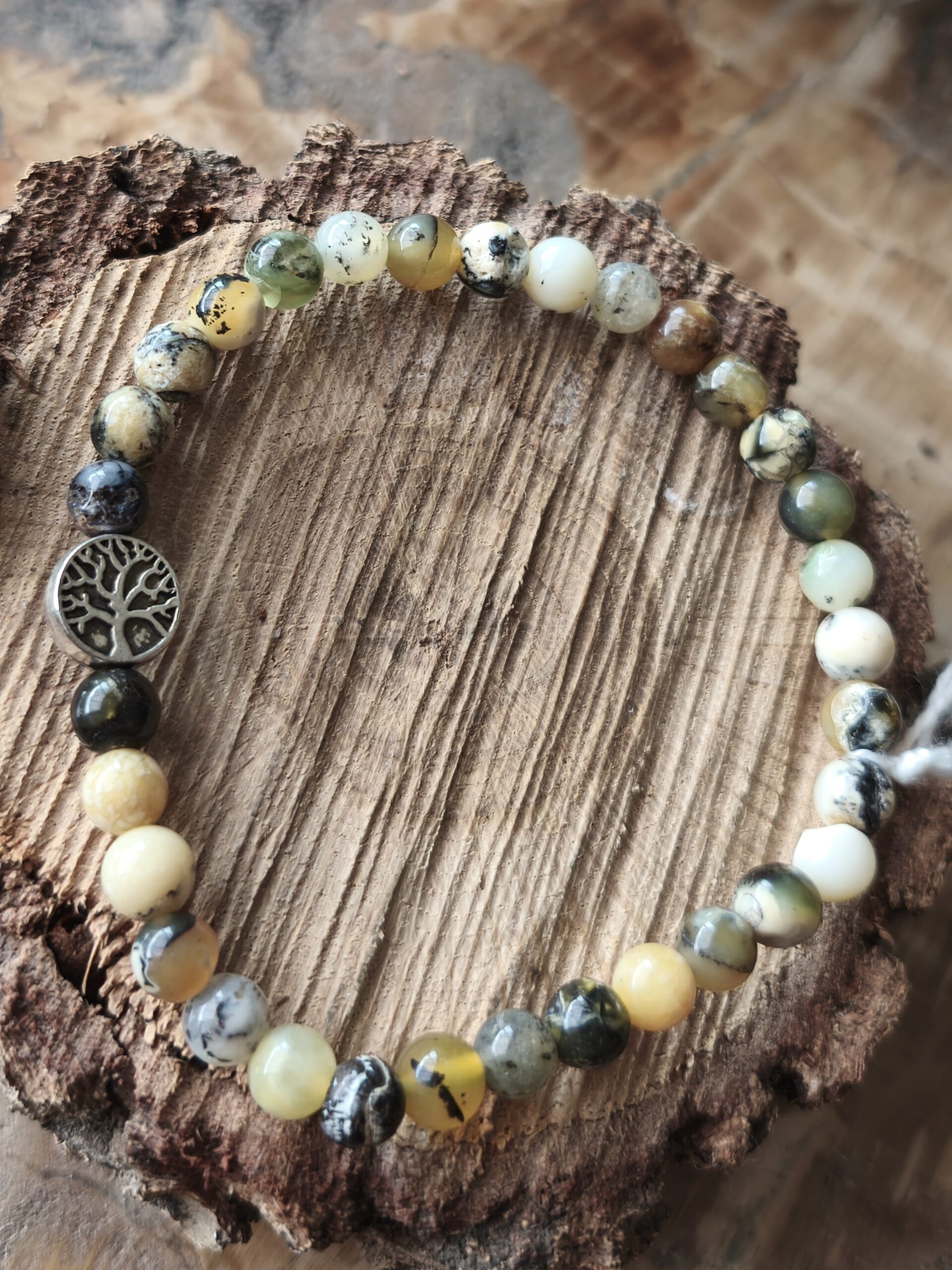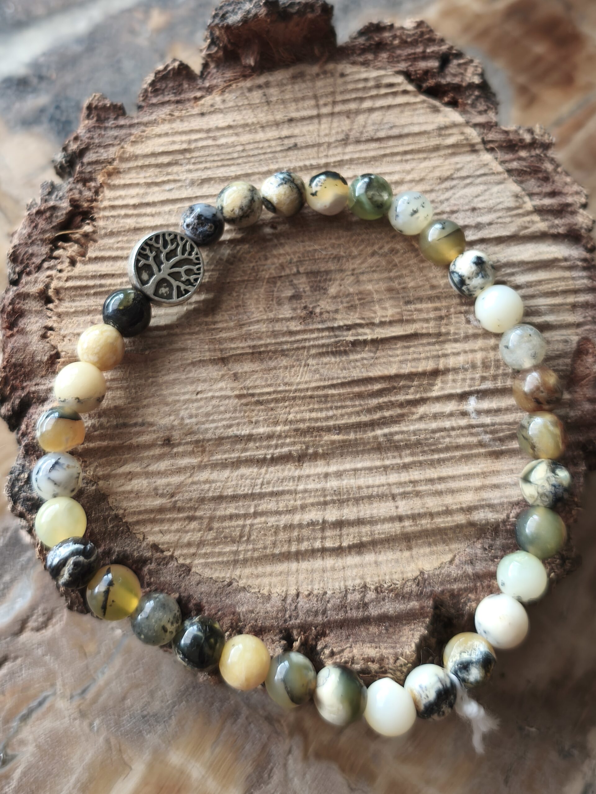 | Opale | Bracelet en opale verte et bijoux arbre de vie en perles de 6 mm pour un poignet de 20 à 21 cm. |