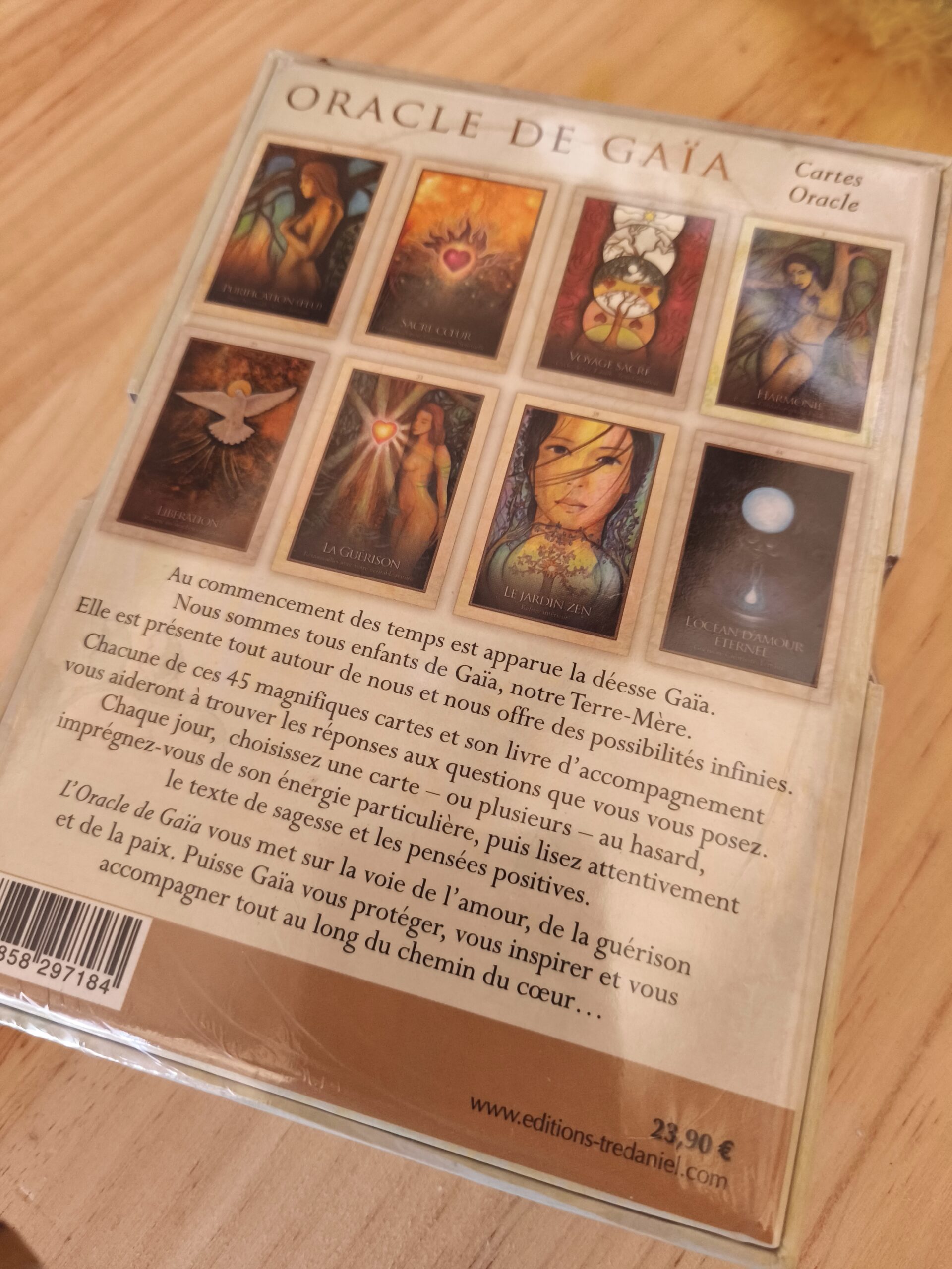 | oracle | nous sommes tous enfants de Gaïa, notre terre-mere… chacune de ces 45 magnifiques cartes et son livre d'accompagnement vous aideront à trouver les reponses que vous vous posez… l'oracle de Gaïa vous met sur la voie de l'amour, de la guérison et de la paix… |