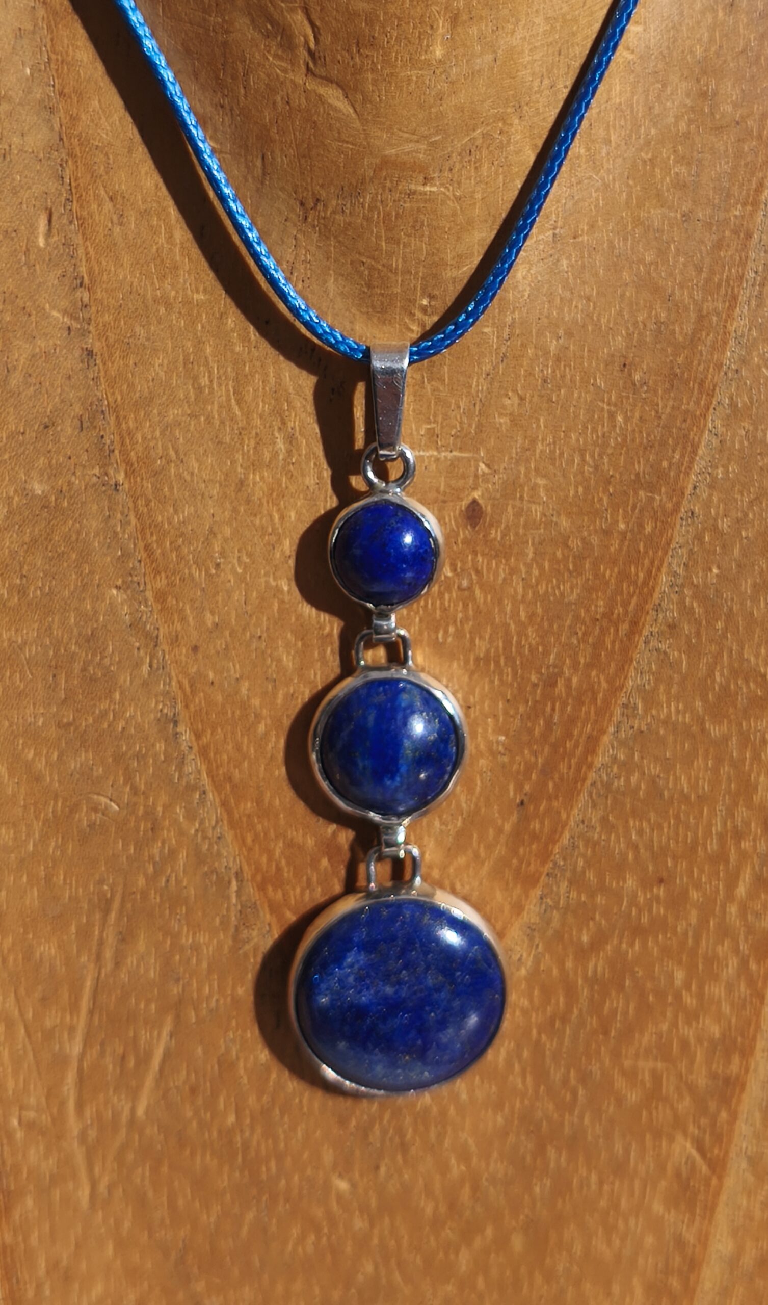 tres beau pendentif avec trois cabochons en lapis-lazuli monté sur argent.