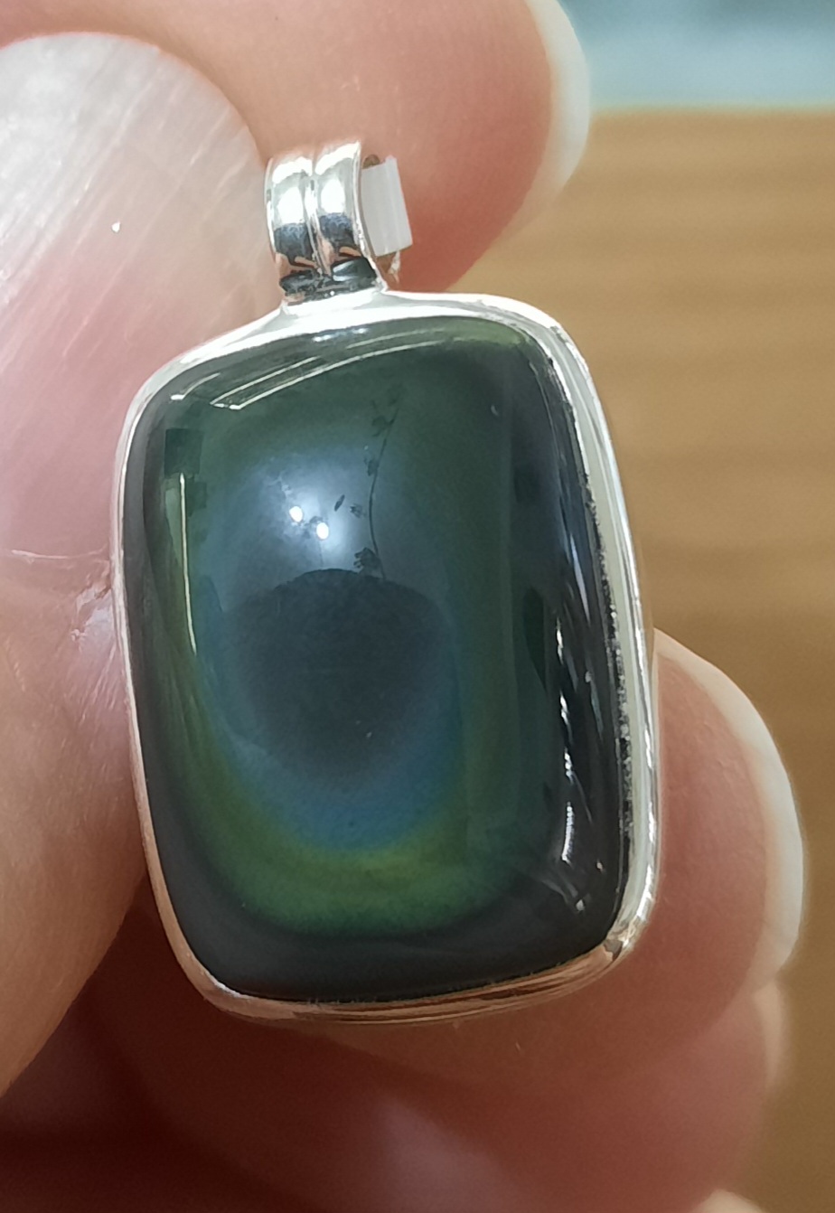 | pendentif | pendentif en obsidienne oeil celeste du Mexique monté sur argent 925, poids 3 g obsidienne pierre qui repousse les energies negatives et protege son porteur de la magie noire et du mauvais oeil… |