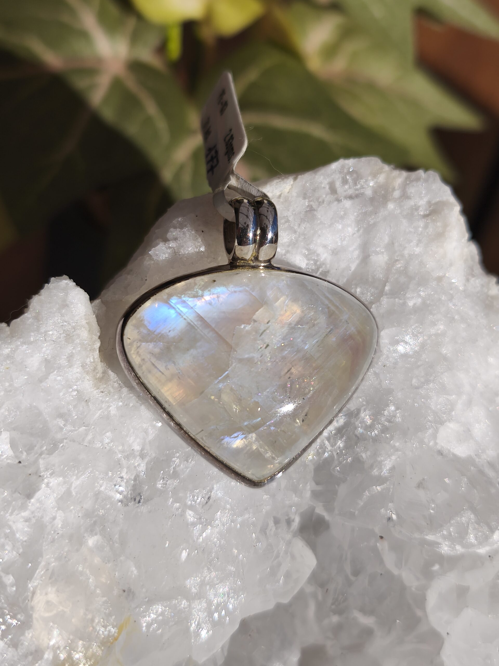 pierre de lune blanche d’inde pendentif coeur / argent