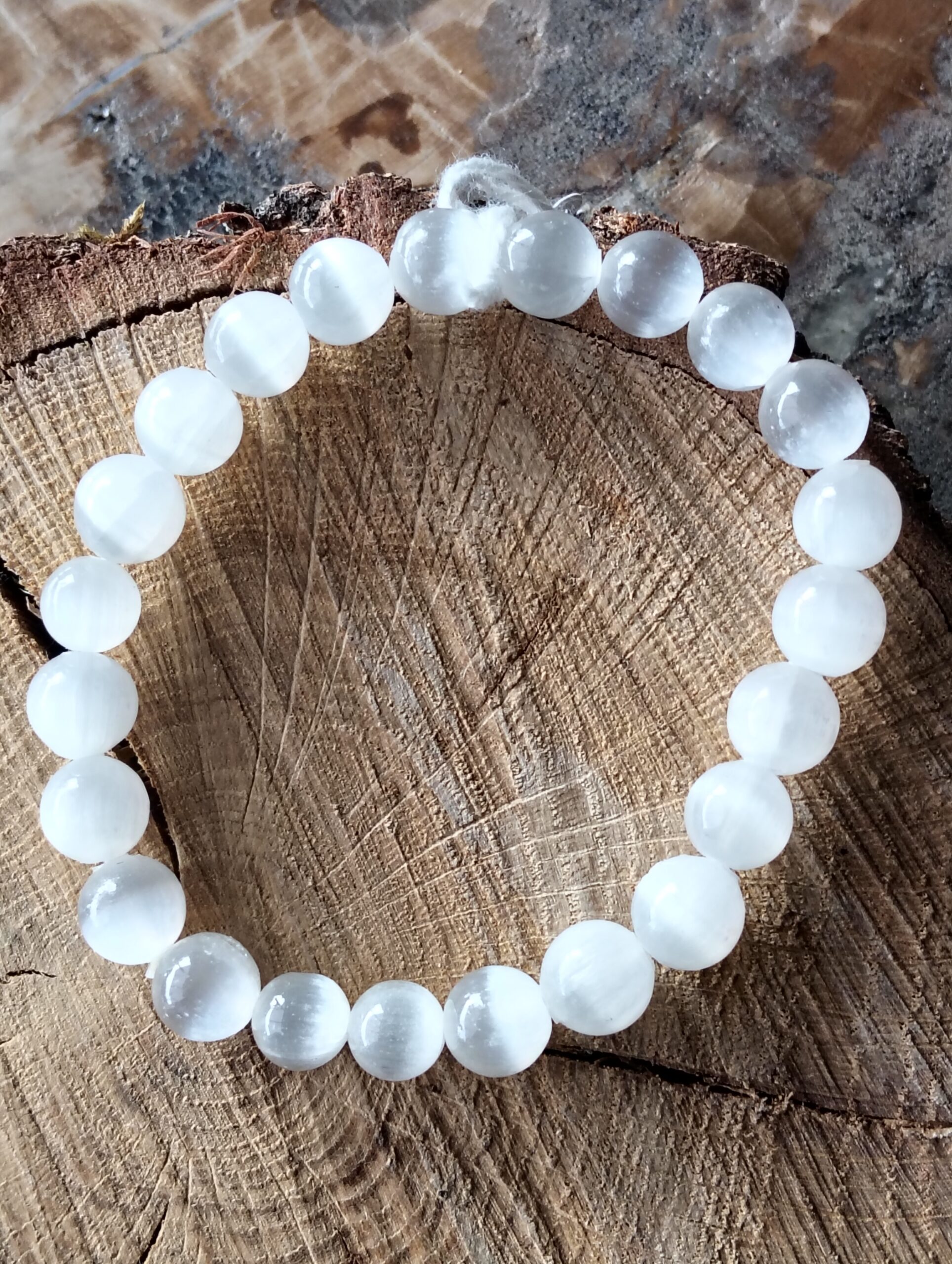 | Selenite | Bracelet sélénite en perles de 8 mm pour un poignet de 18 à 19 cm. |