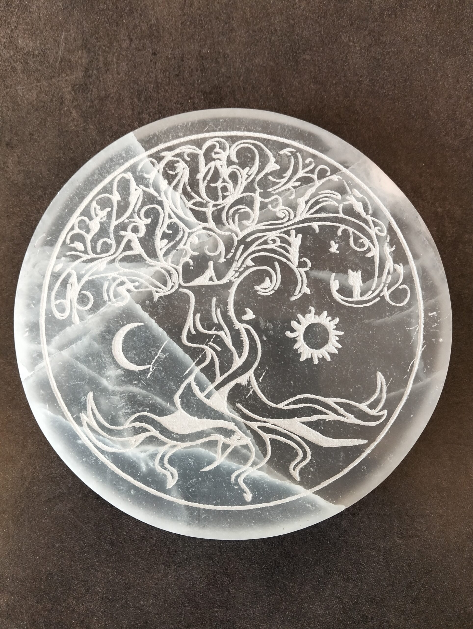| selenite | plaque de rechargement en selenite avec arbre de vie. |