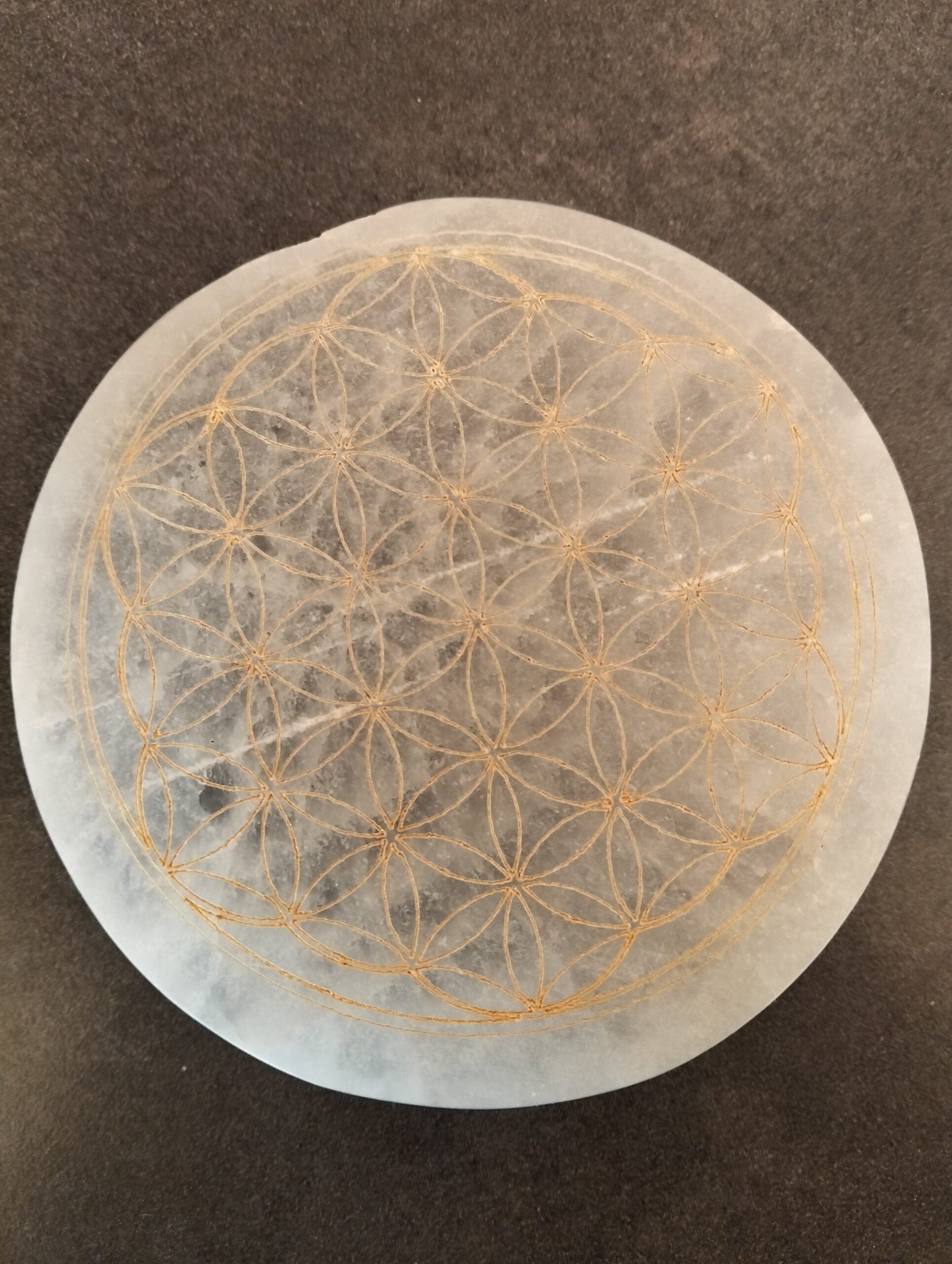 | selenite | plaque de rechargement en selenite avec fleur de vie. |