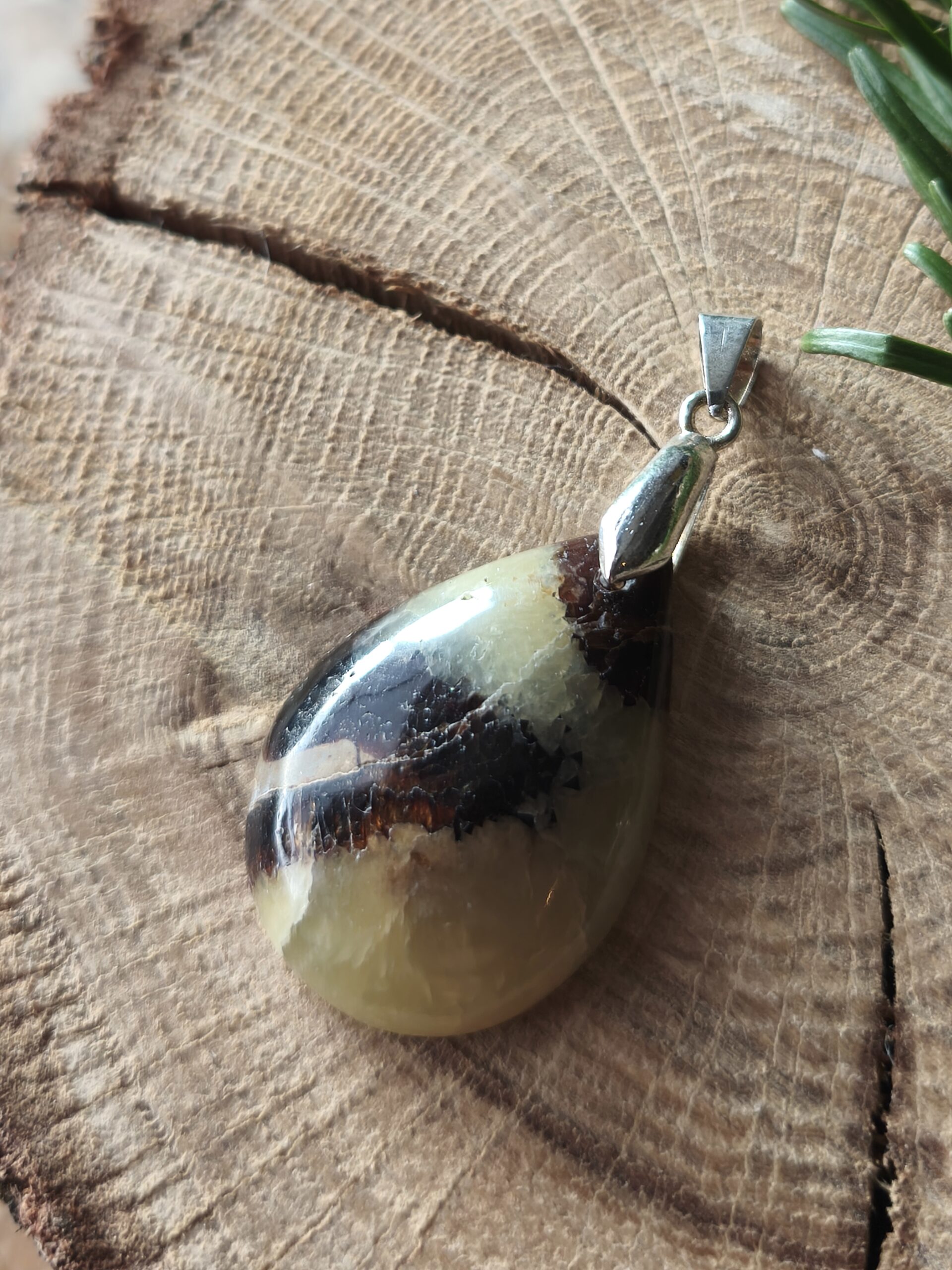 | pendentif | pendentif en septaria de Madagascar forme goutte, poids 7 g la septaria, pierre libératrice… elle dissout les blocages emotionnels liés aux traumatismes du passé et permet ainsi d'avancer… la septaria recharge notre energie sur tous les plans… |