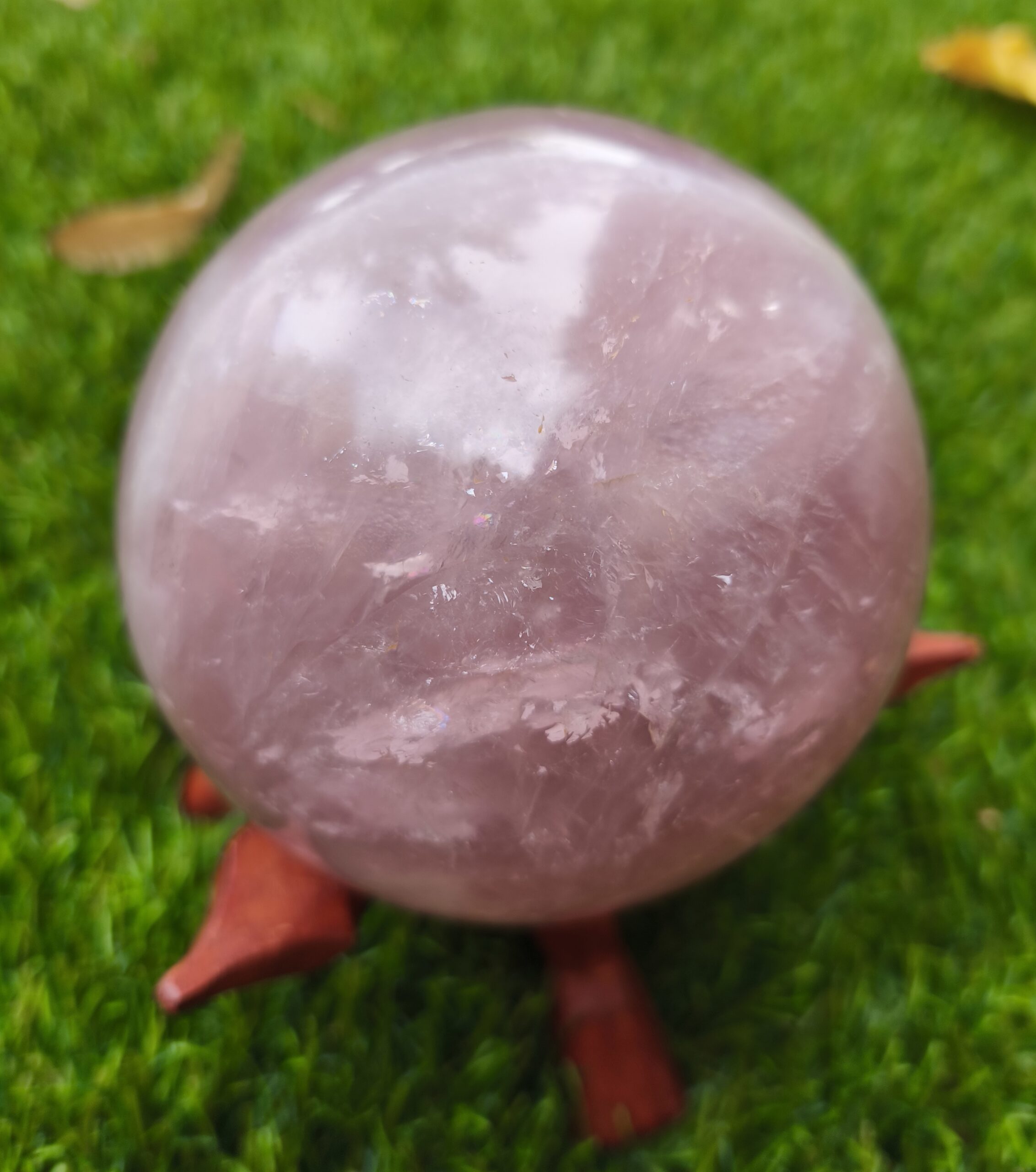 | sphere | belle sphere en quartz rose de 11 cm de diametre. poids 1, 560 kg. le quartz rose nous fait entrer dans la guerison du coeur, de notre enfant interieur, on touche aux memoires transgenerationnelles… |