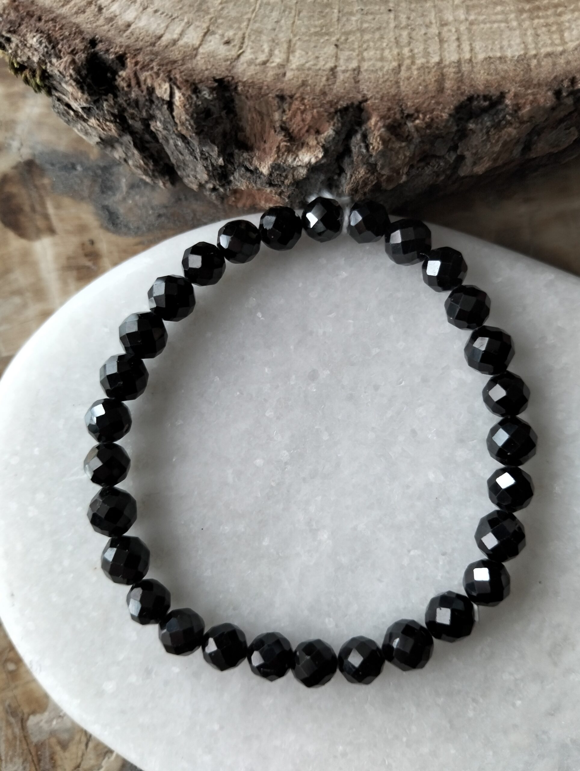 | Spinelle noire facettée | bracelet spinelle noire facetée perles 6 mm, pour un poignet de 18 à 19 cm le spinelle noir est une pierre protectrice contre les énergies négatives, les jalousies, les mauvais sorts, la magie noire… il est réputé pour favoriser le renouveau, la régénération et l'apaisement… |