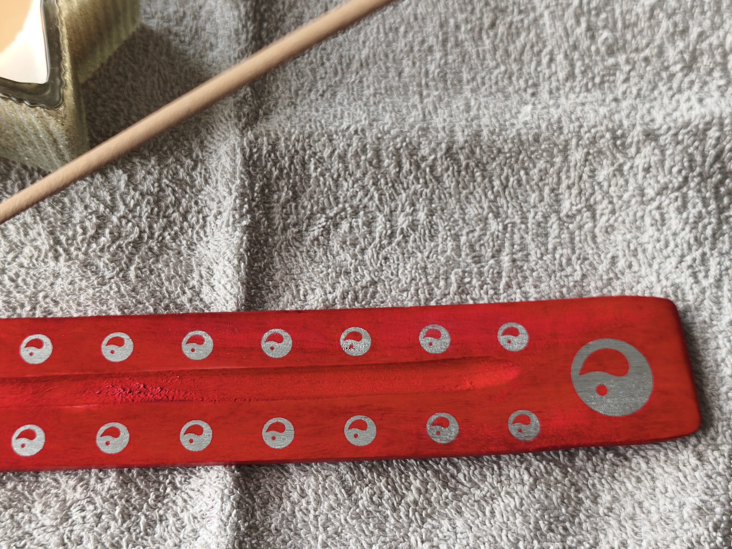 support à encens bâton, en bois rouge avec yin yang.