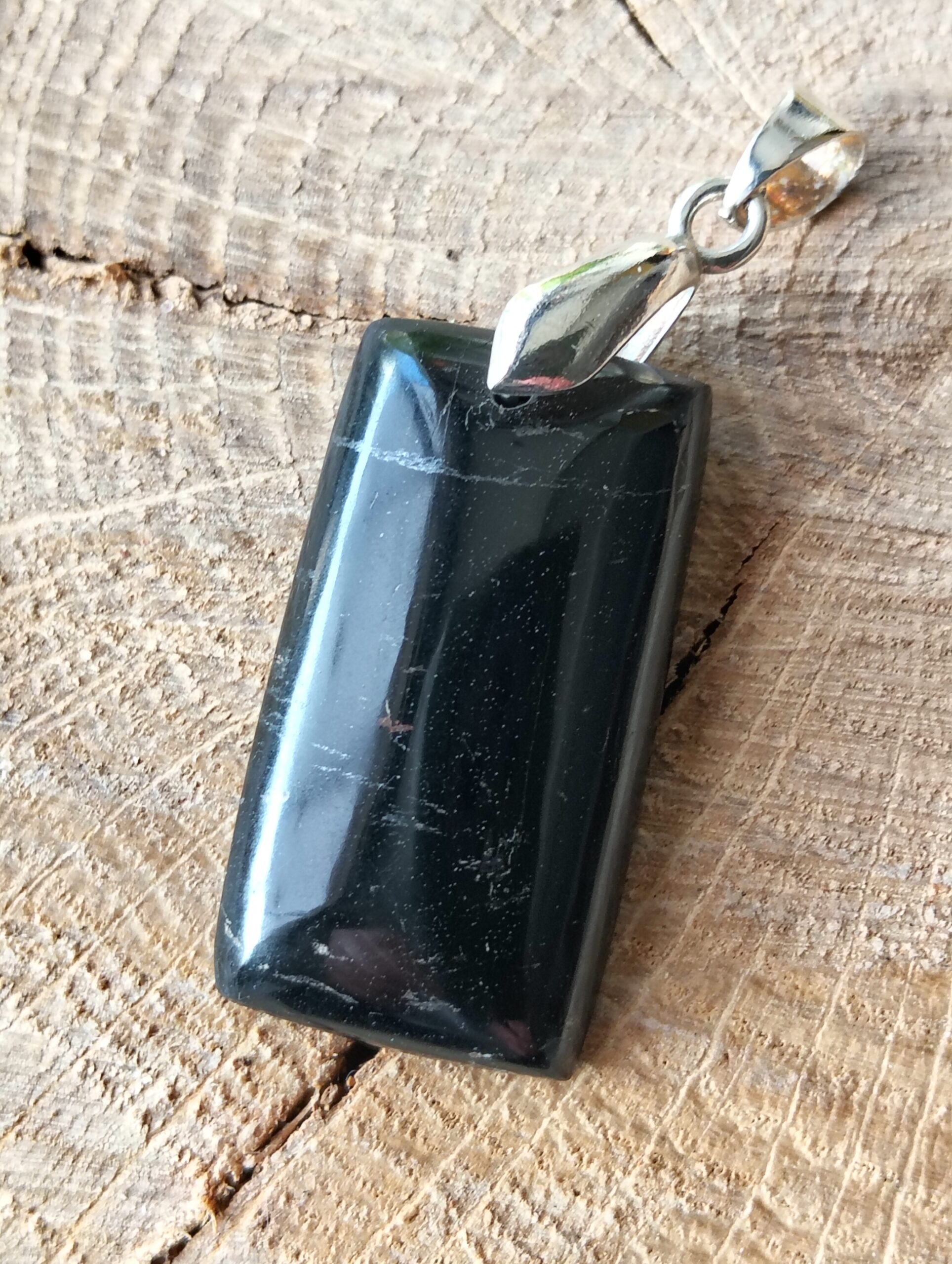 | Tourmaline | Pendentif en Tourmaline noire forme rectangle. La Tourmaline noire pierre de protection contre les ondes négatives et les vibrations nocives, |