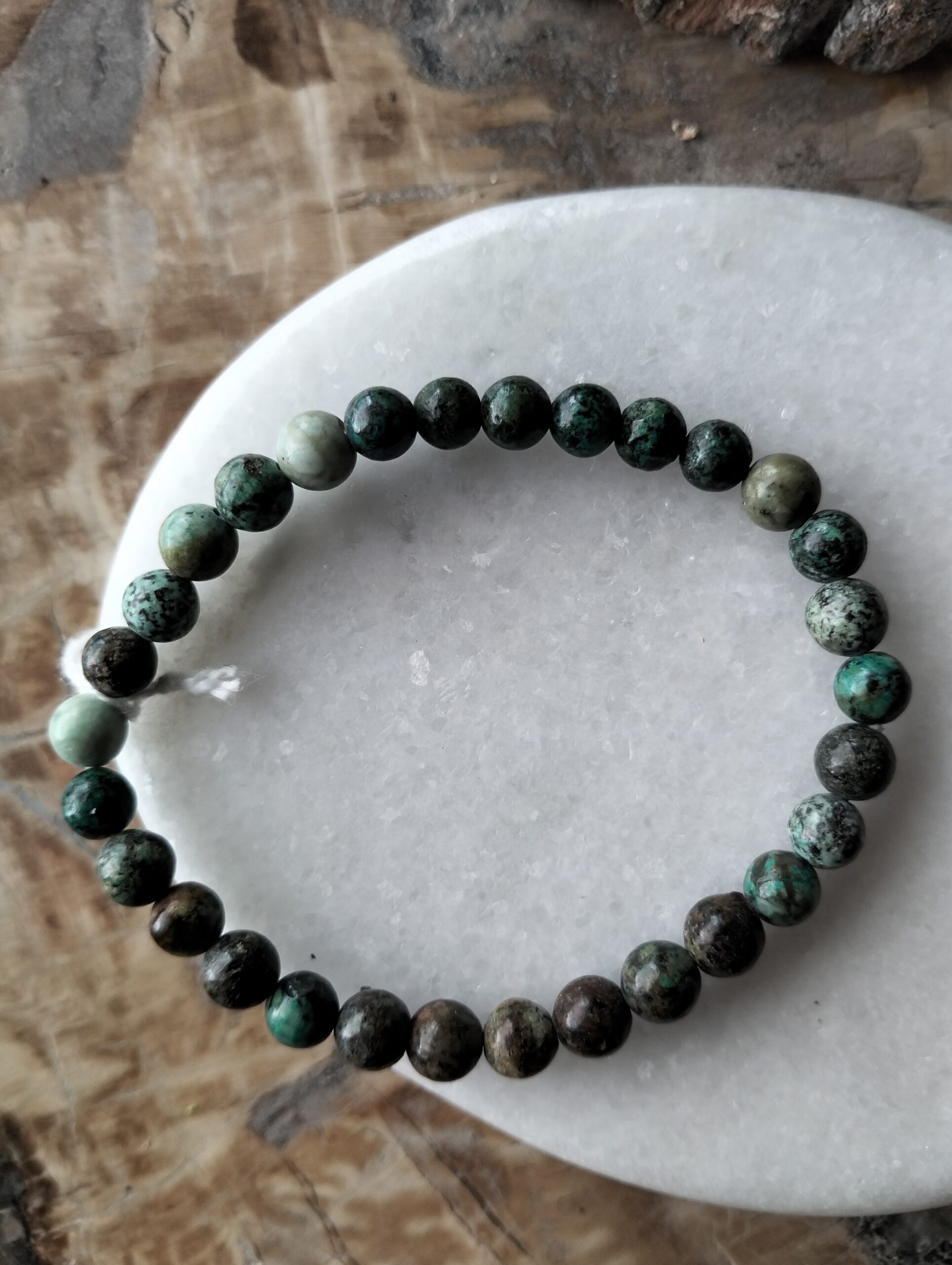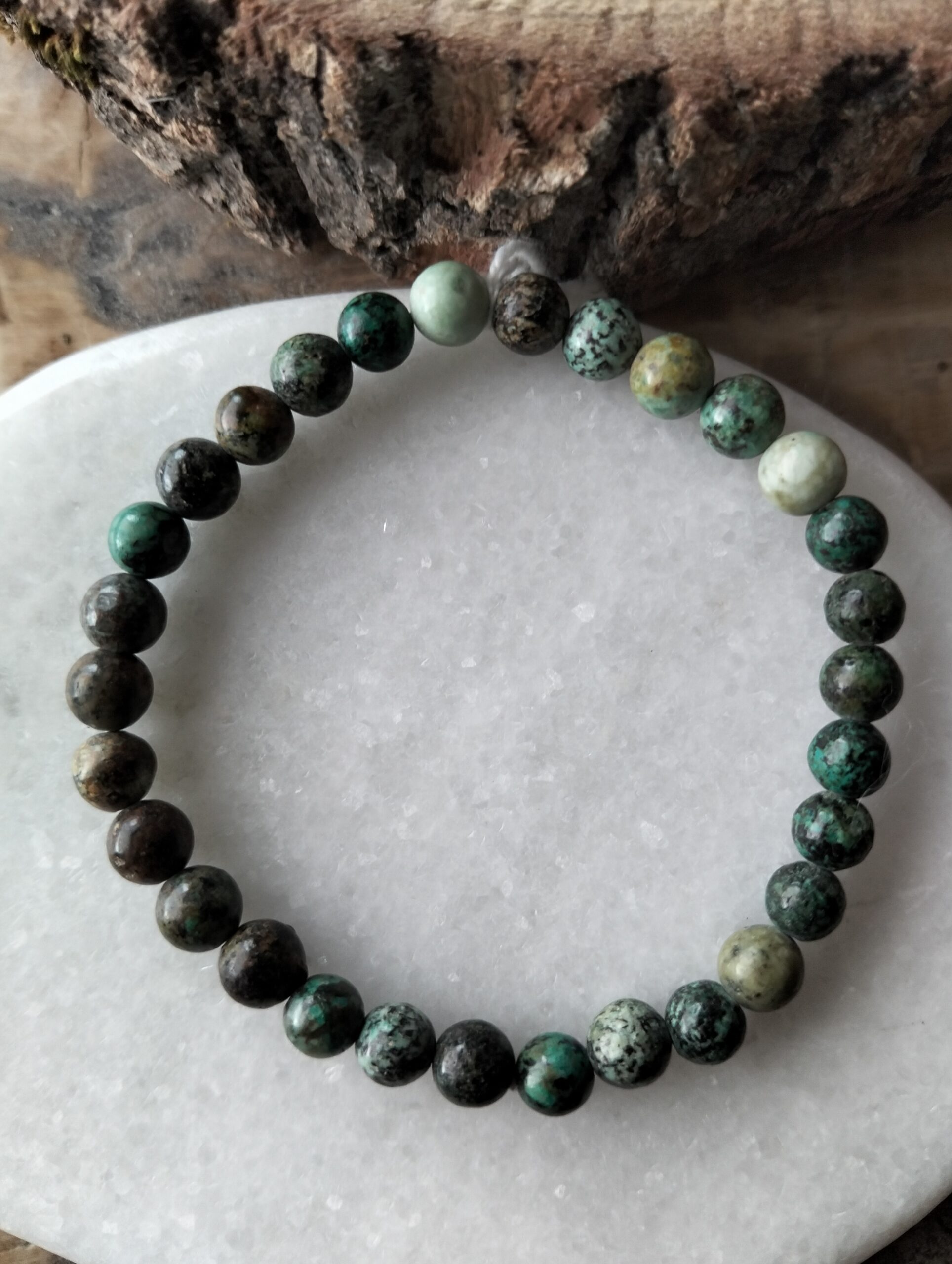 | Turquoise africaine | Bracelet en Turquoise africaine perles de 6 mm pour un poignet de 17 à 18 cm. |