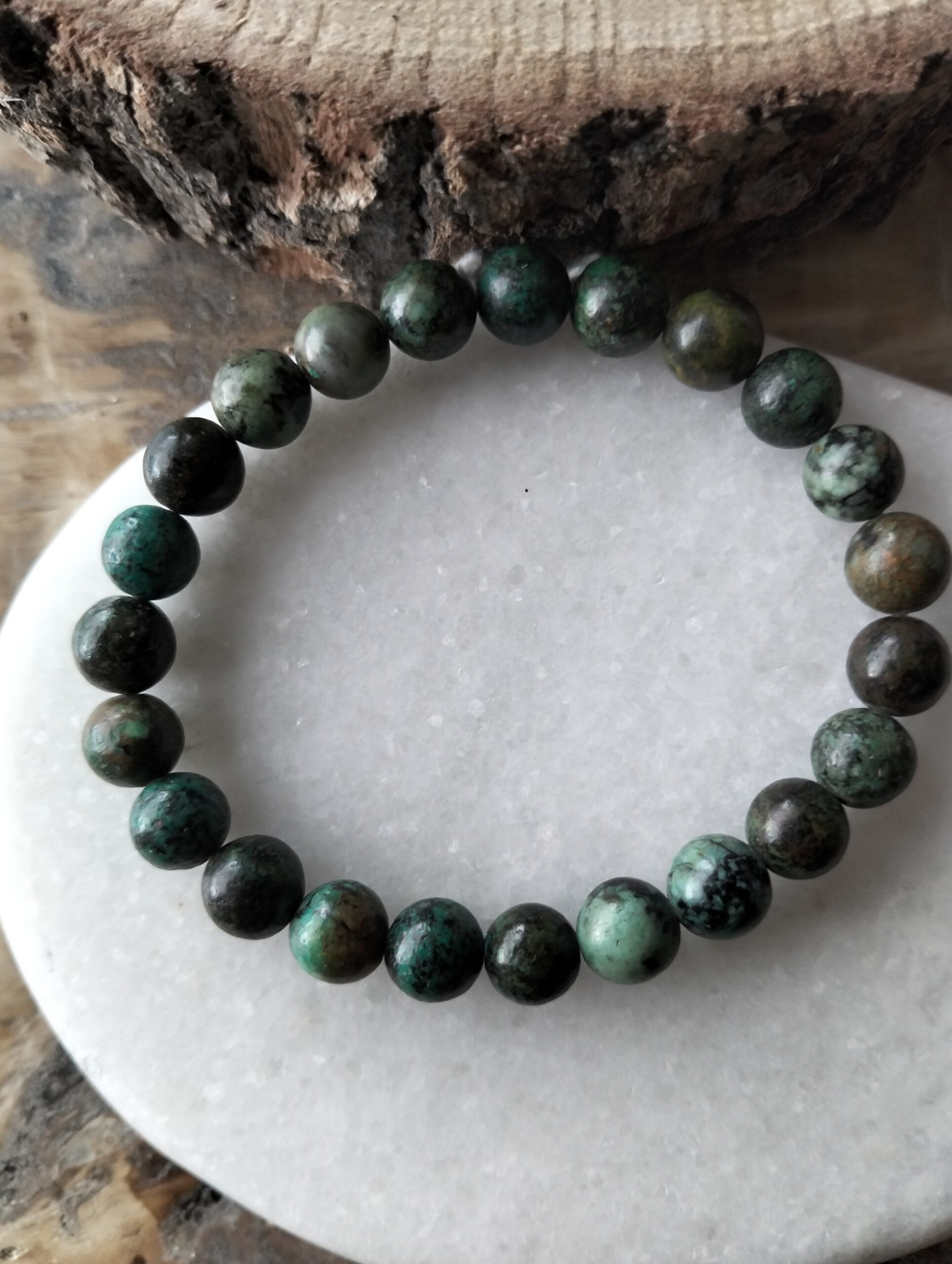 | Turquoise africaine | Bracelet en Turquoise africaine perles de 8 mm pour un poignet de 17 à 18 cm. |